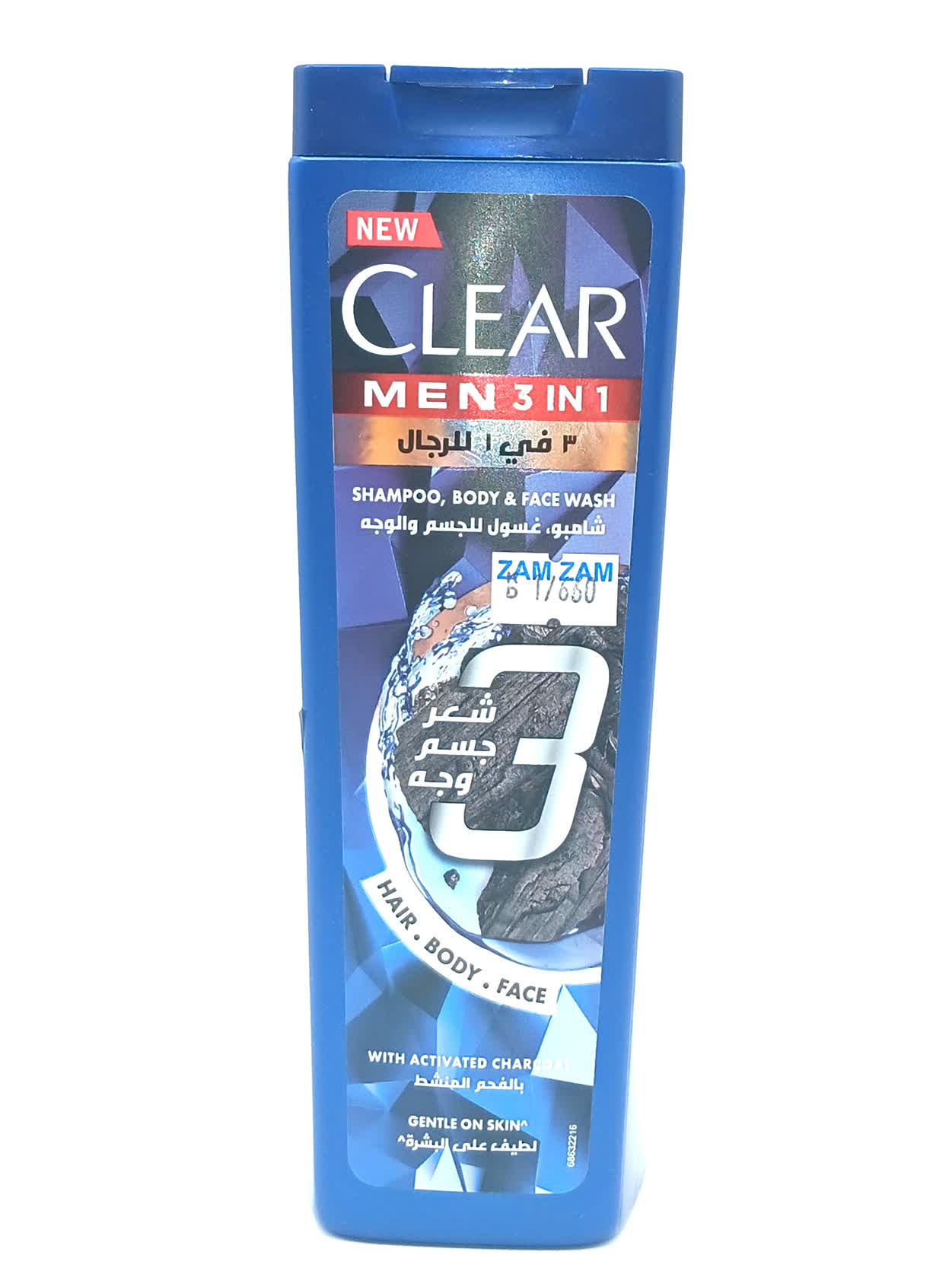 كلير شامبو للشعر وغسول للجسم والوجه للرجال 3×1 بالفحم المنشط
