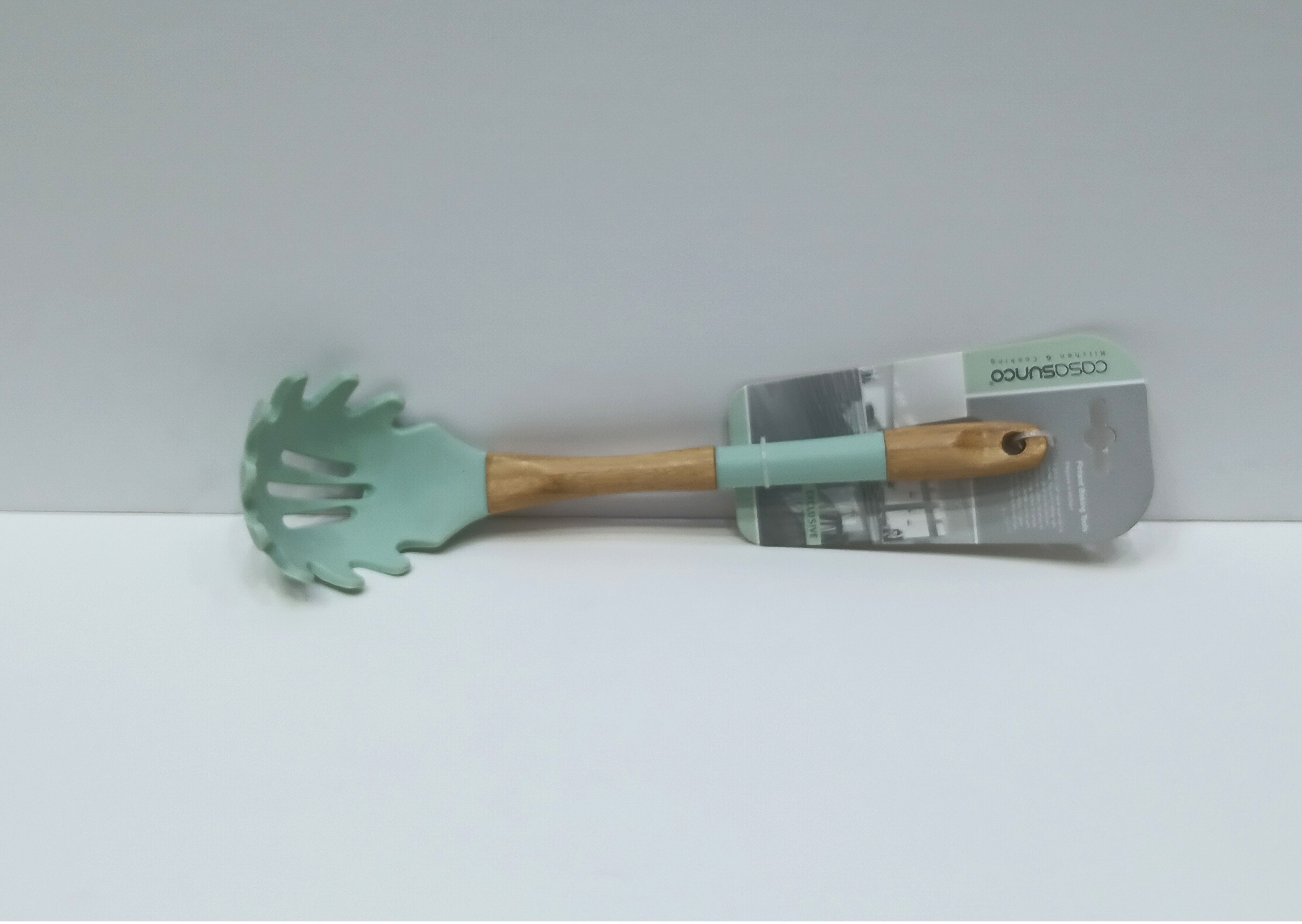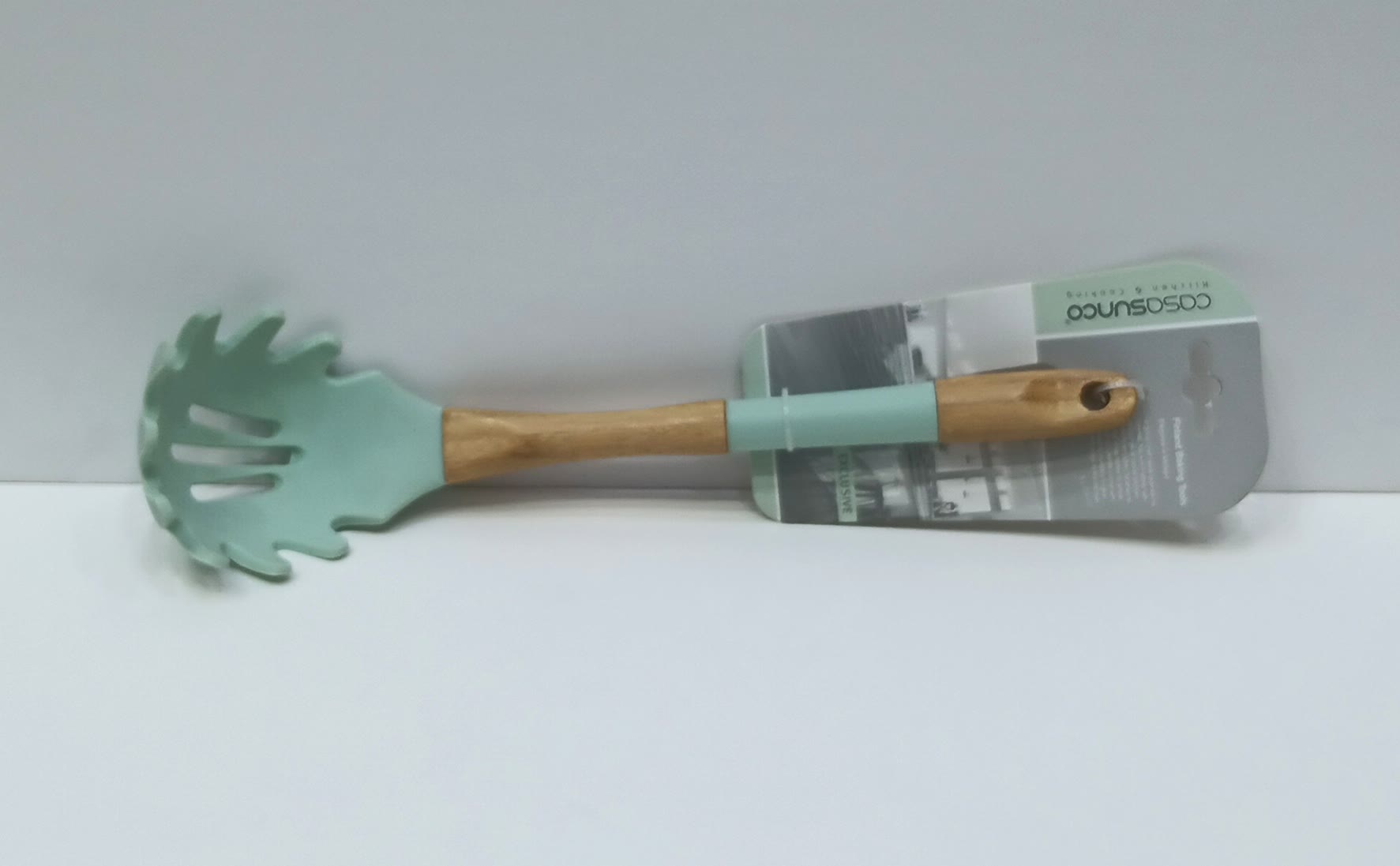 ملعقة اسباجيتي سيليكون بيد خشبي