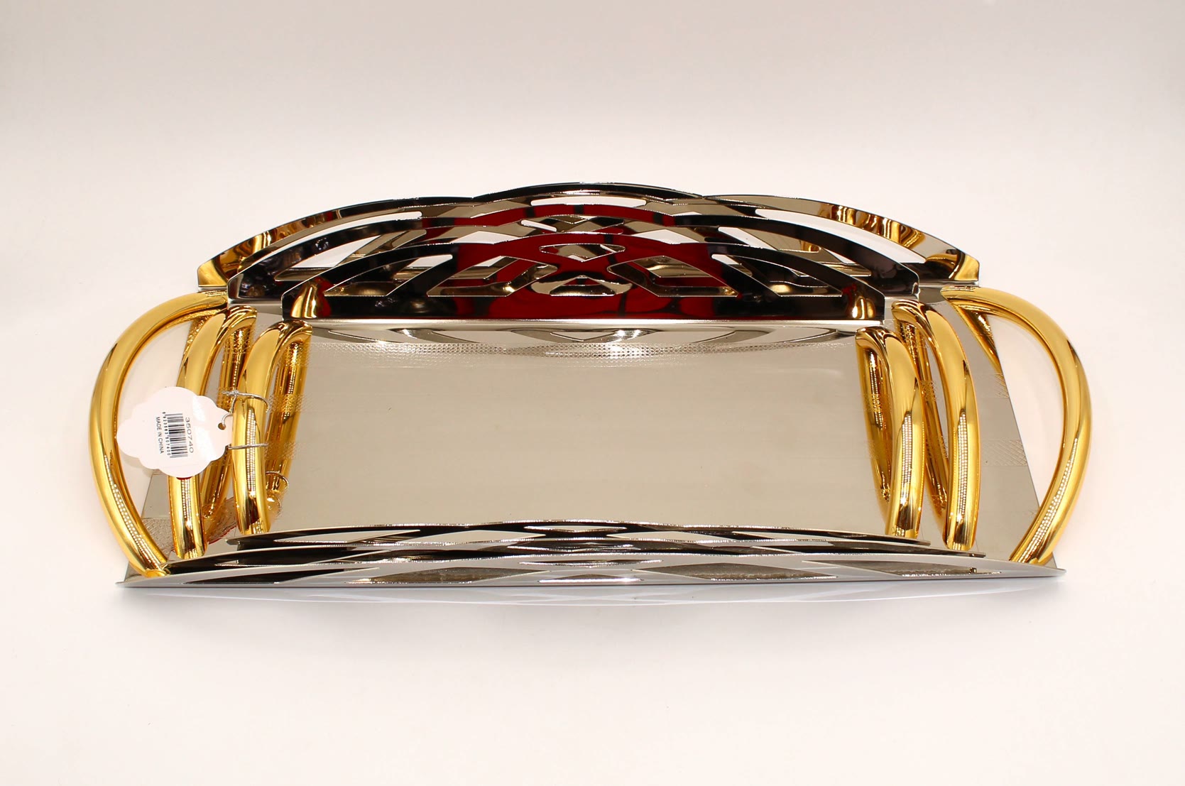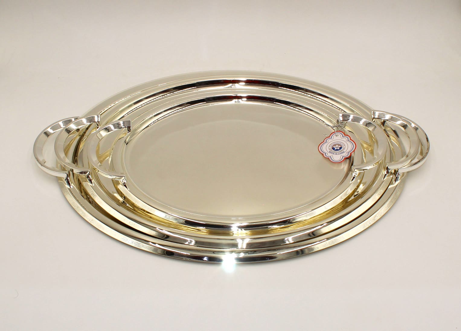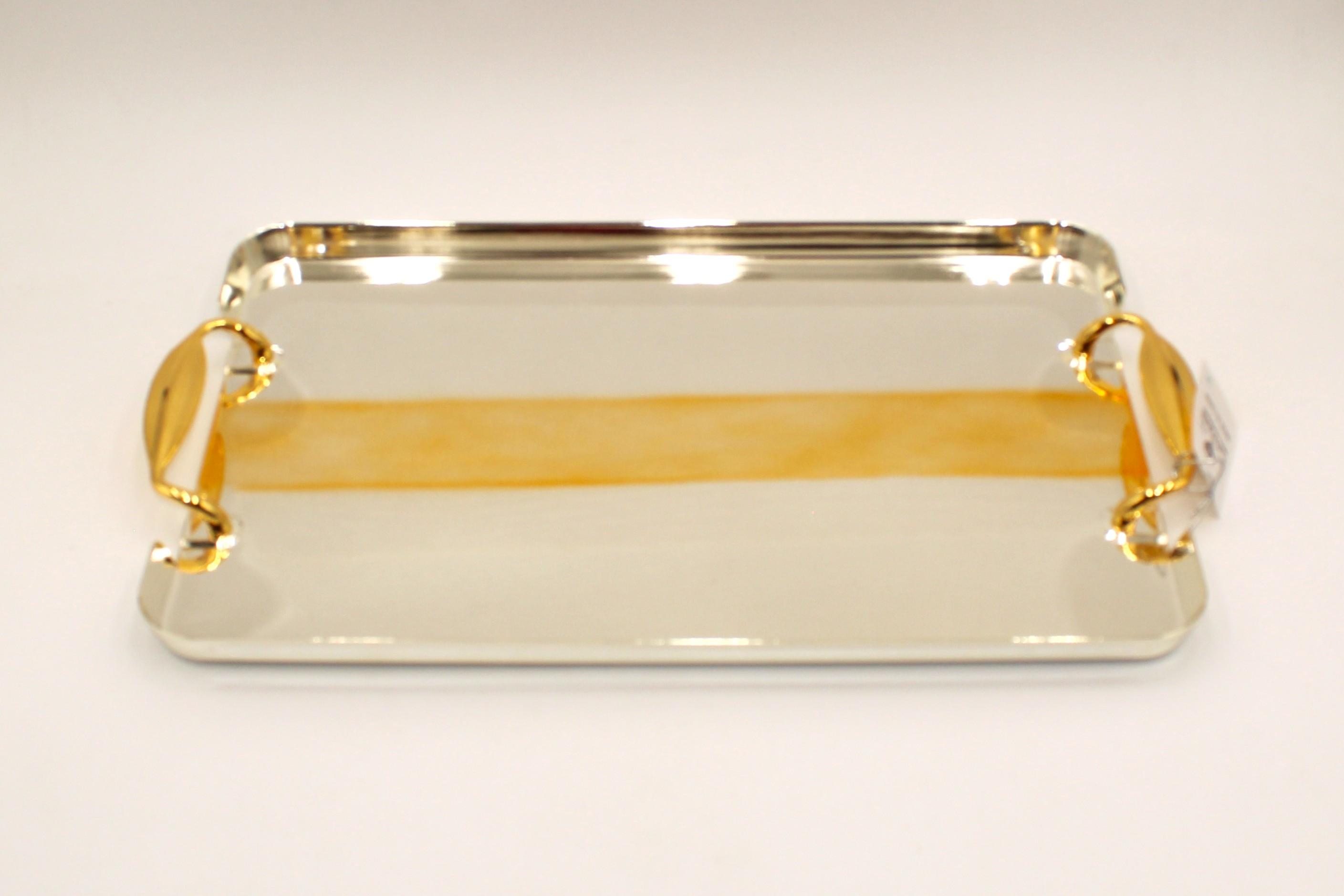طقم صواني تقديم ستيل فضي وذهبي 3 قطع ( تباسي )