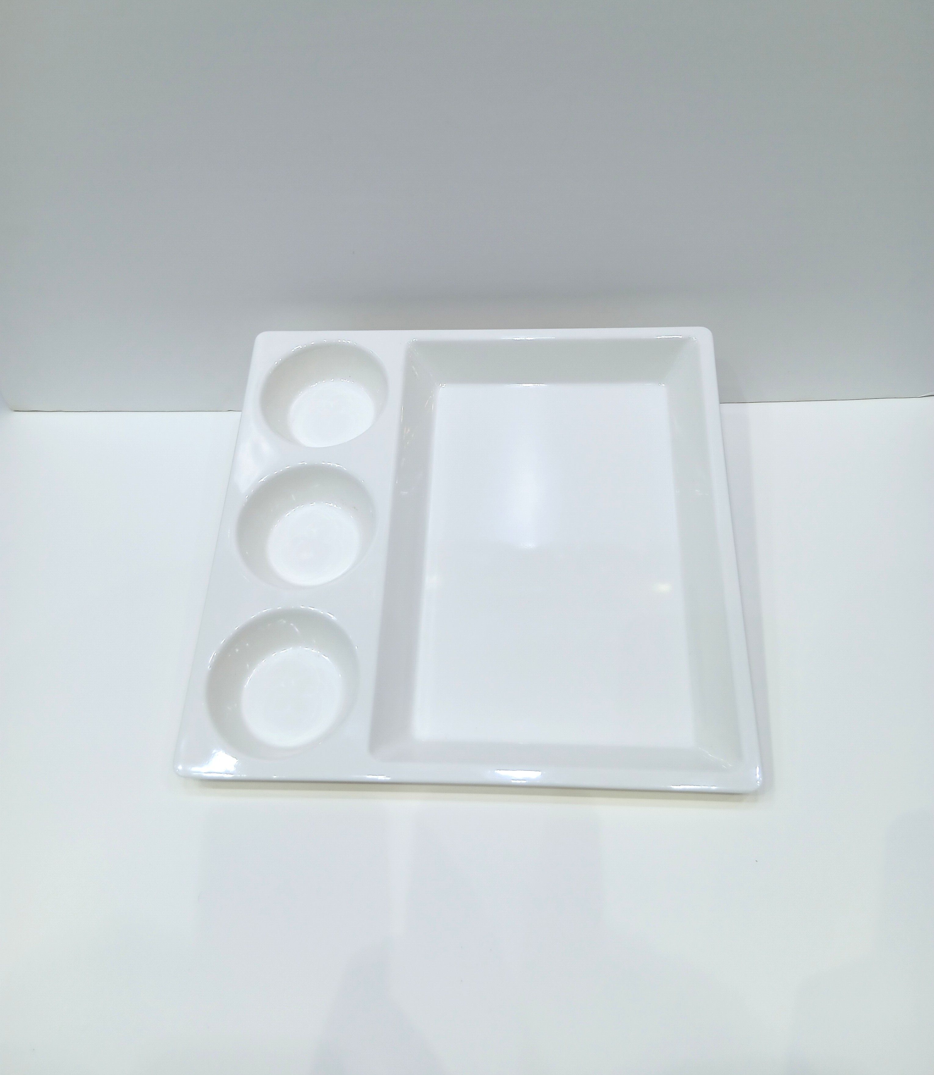صحن ميلامين مربع مقسم لثلاث فتحات 25 سم