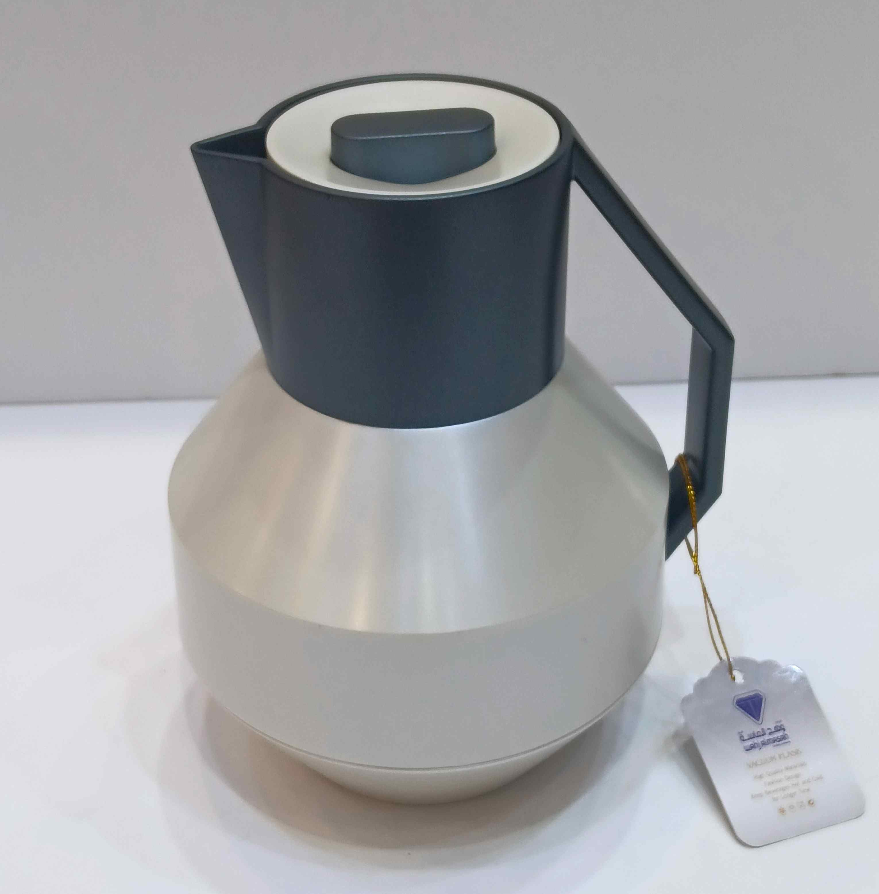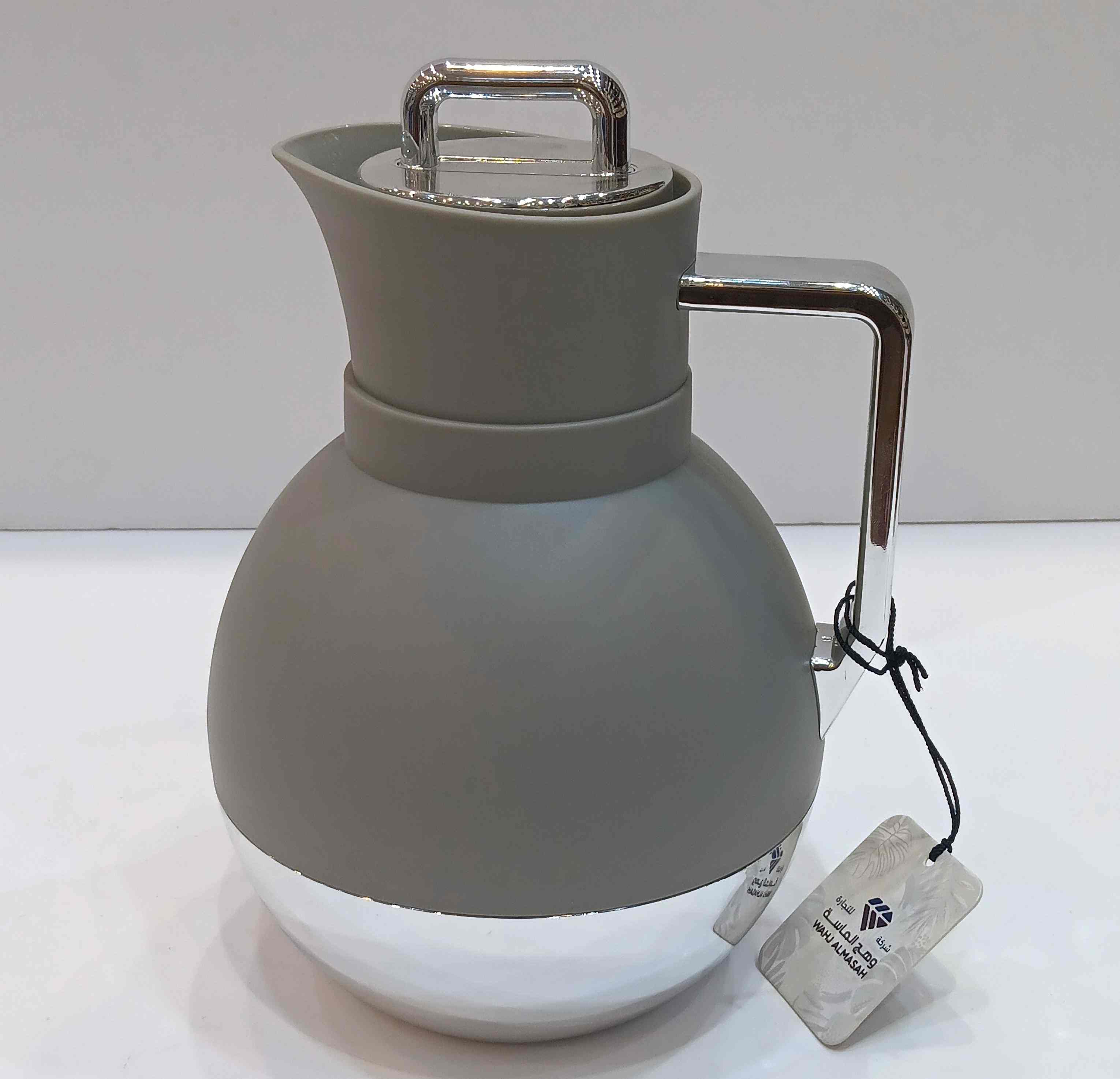 ترمس رمادي بيد وغطاء فضي ( مطارة )
