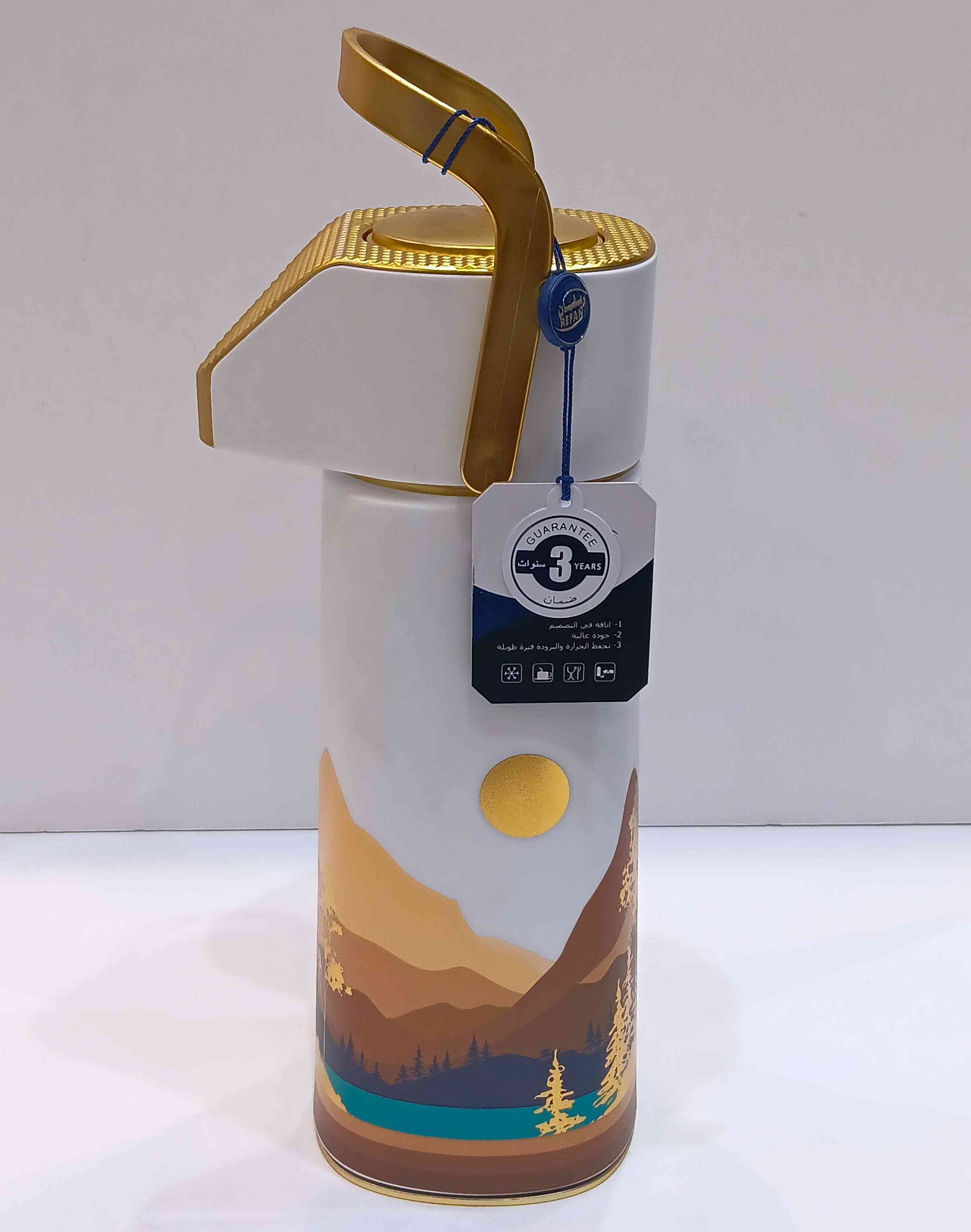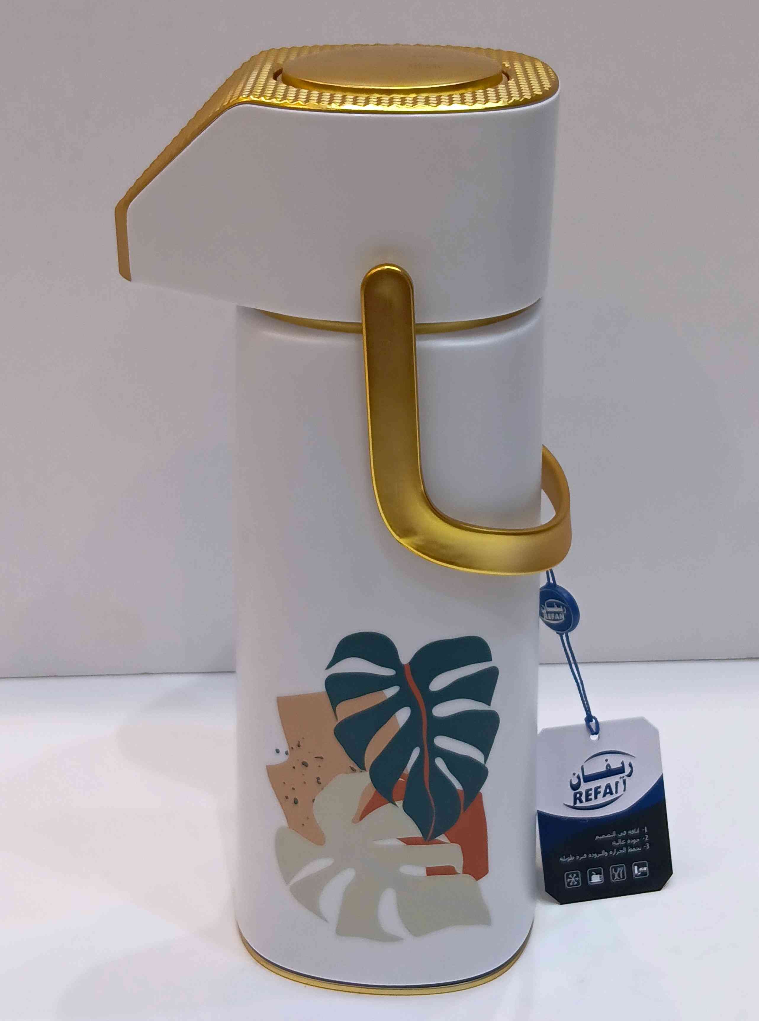 ترمس ريفان ابيض 1 لتر بيد ذهبي ( مطارة )