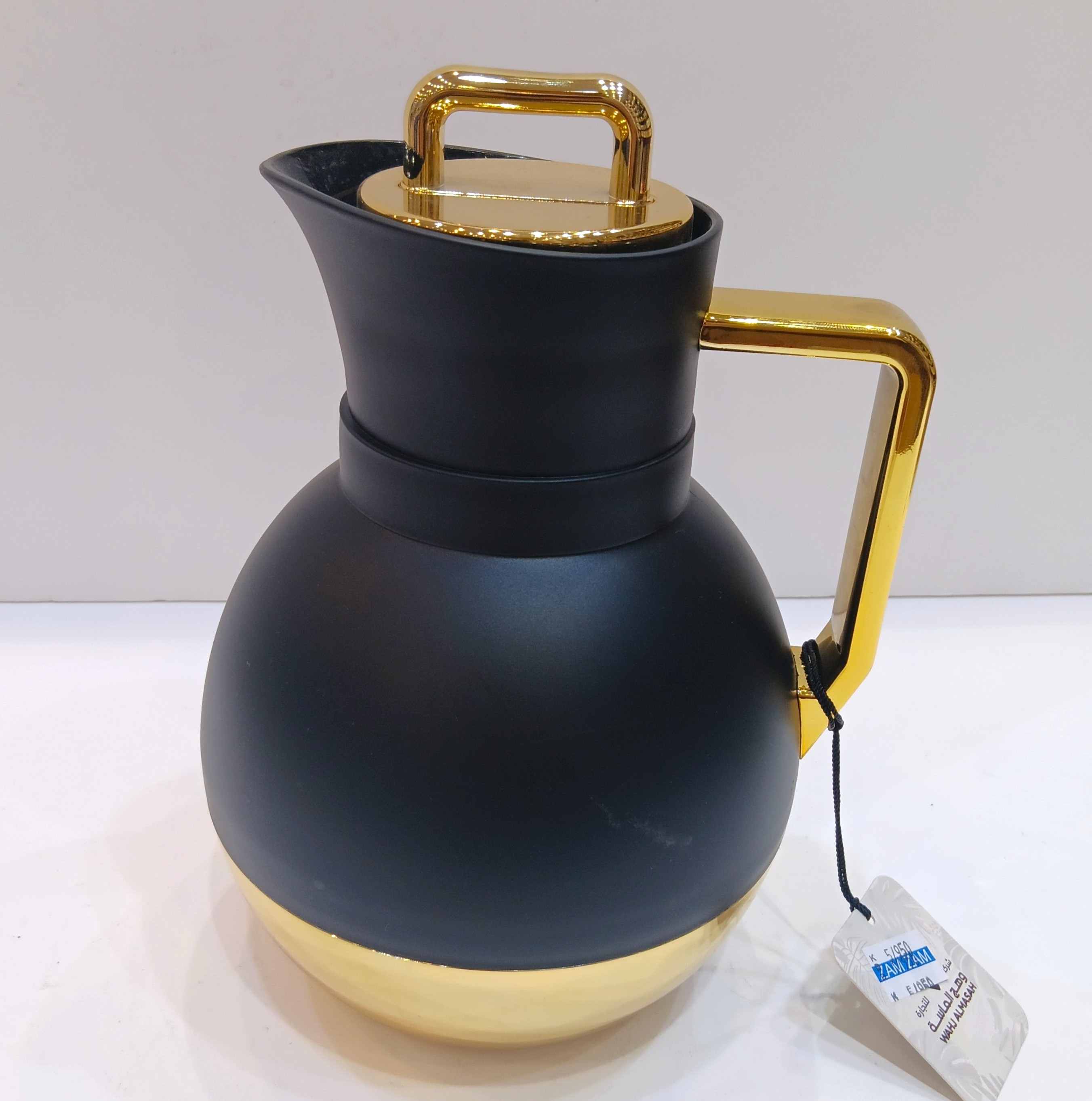ترمس اسود بيد وغطاء ذهبي ( مطارة )