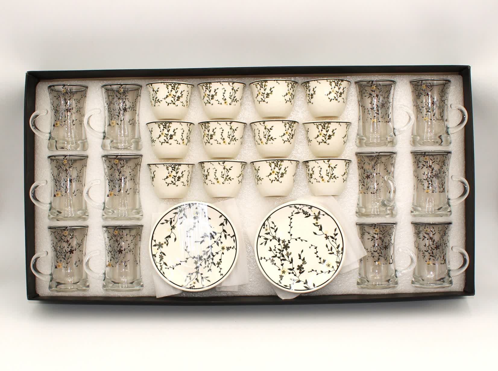 طقم استكانات شاي وفناجين قهوة 36 قطعة