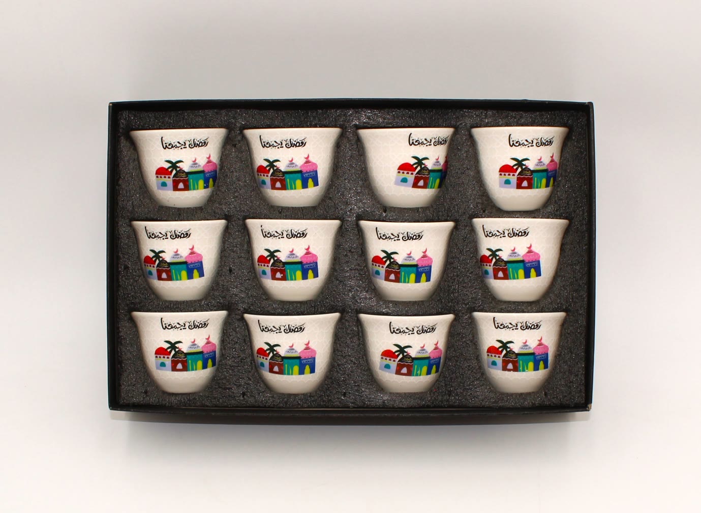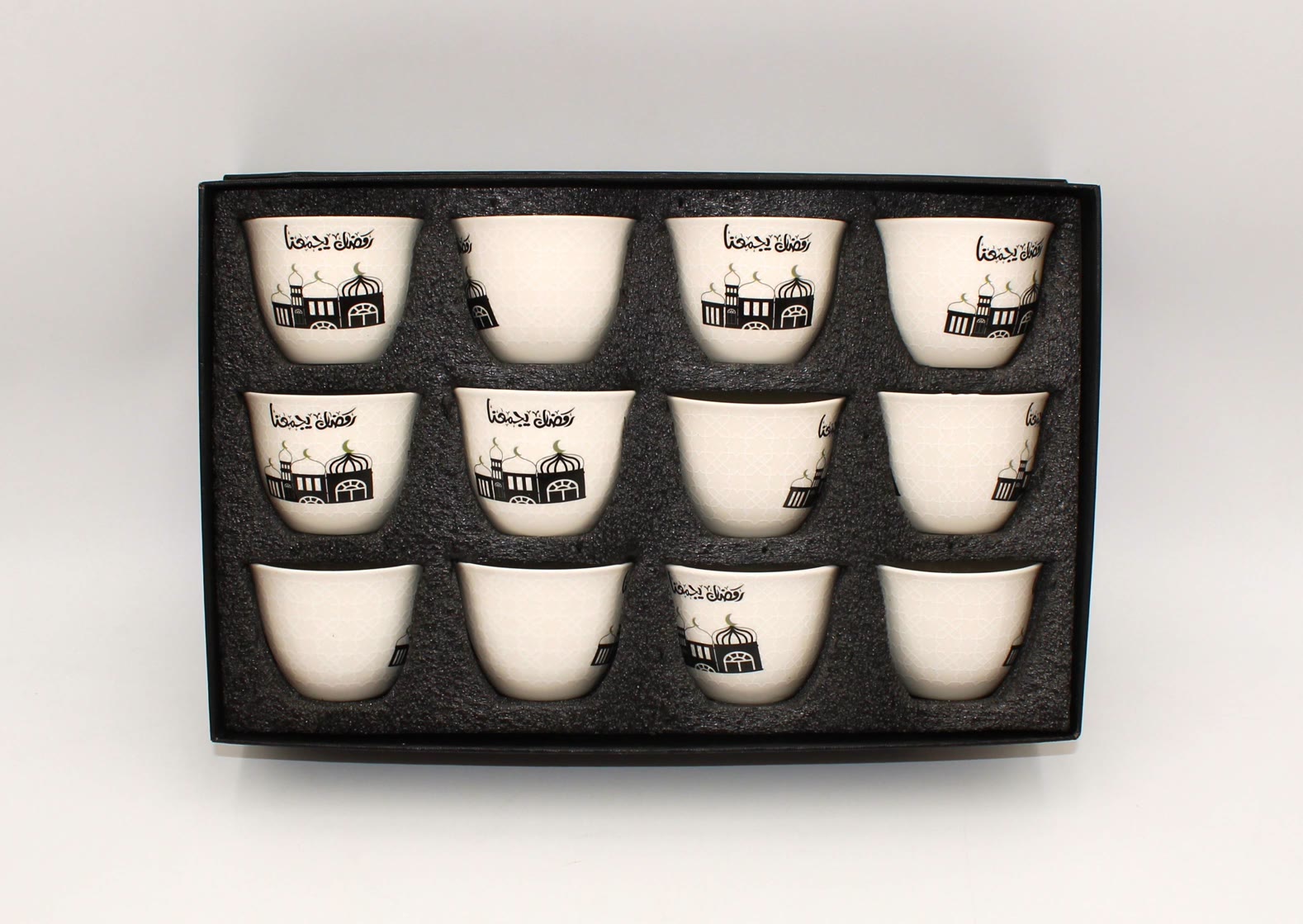 طقم فناجين قهوة عربي 12 قطعة بعبارة " رمضان يجمعنا "