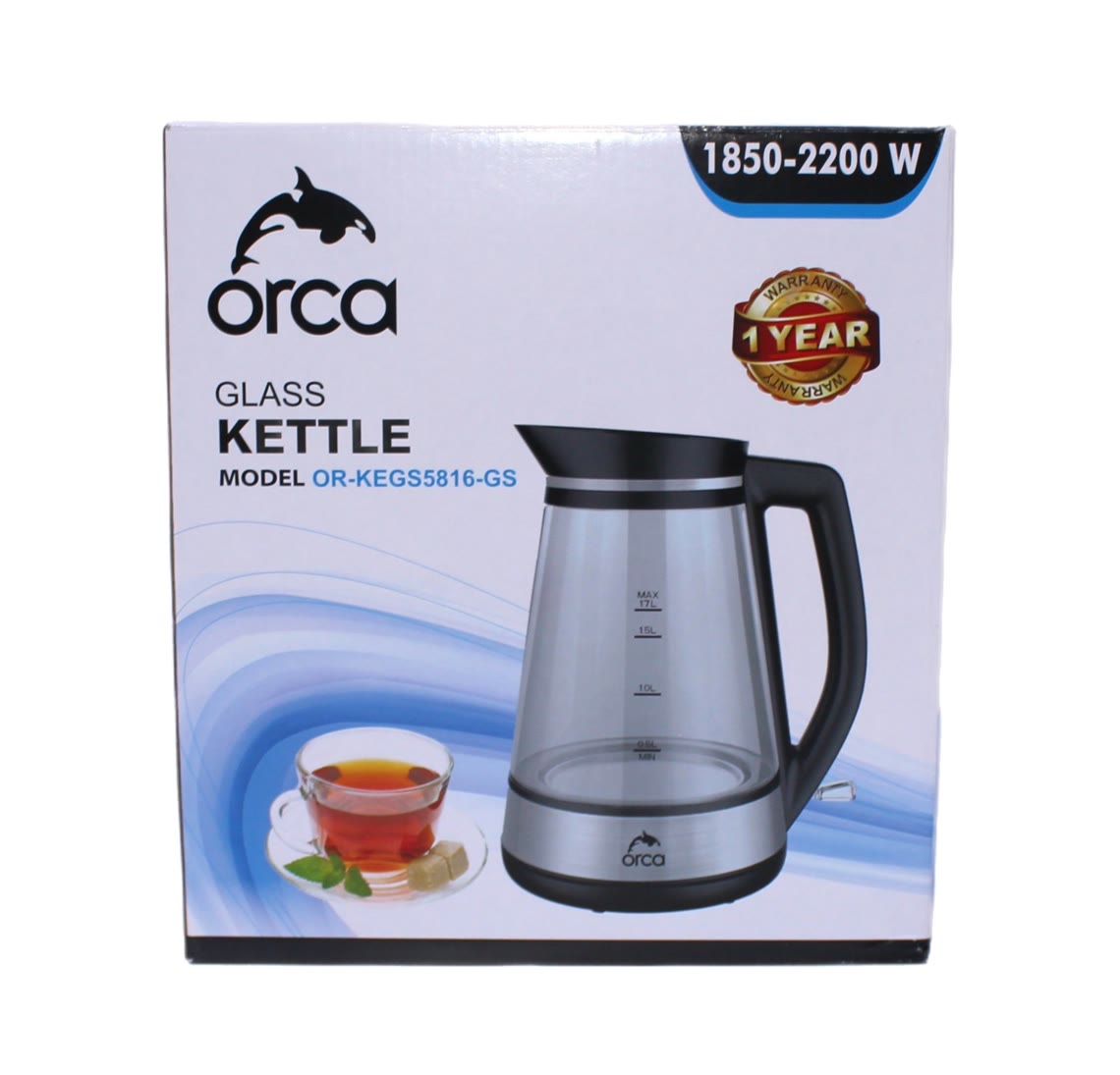 غلاية ماء زجاج من اوركا 1.7 لتر 1850 واط - 2200 واط
