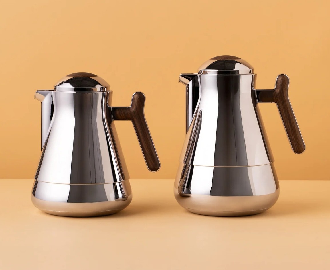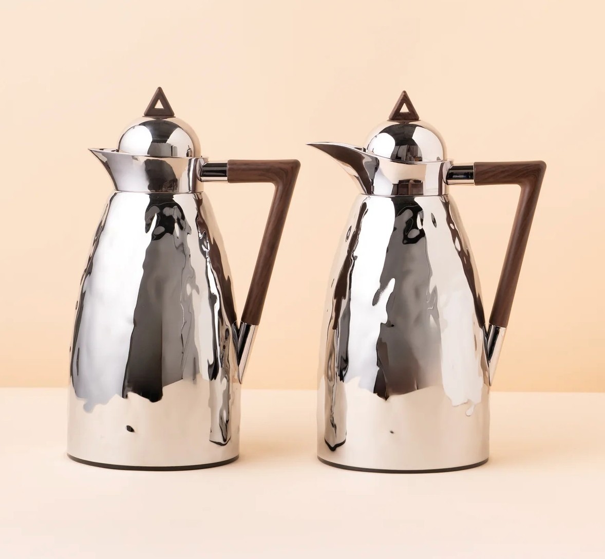 طقم مطارات علياء من وابا قطعتين 1 لتر فضي مطفي بيد خشبي