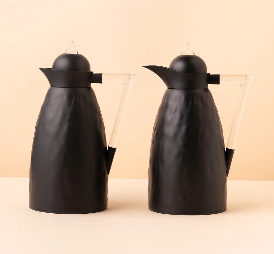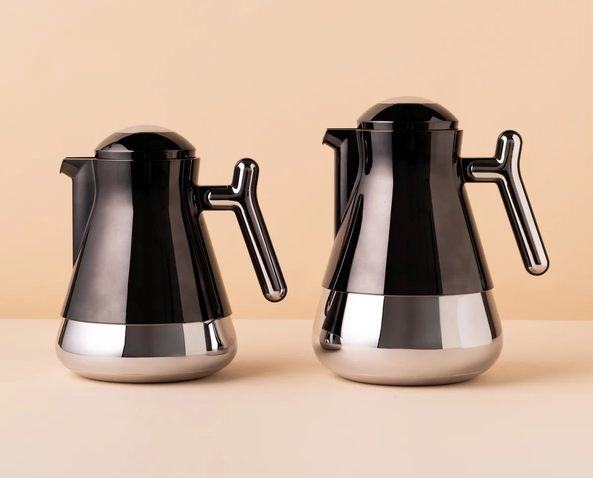 طقم مطارات علياء من وابا قطعتين 1 لتر اسود نيكل بيد اكريلك