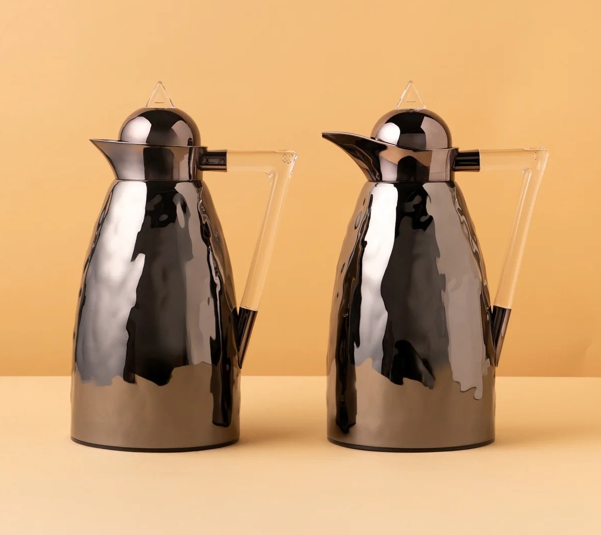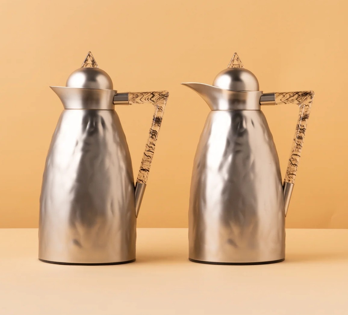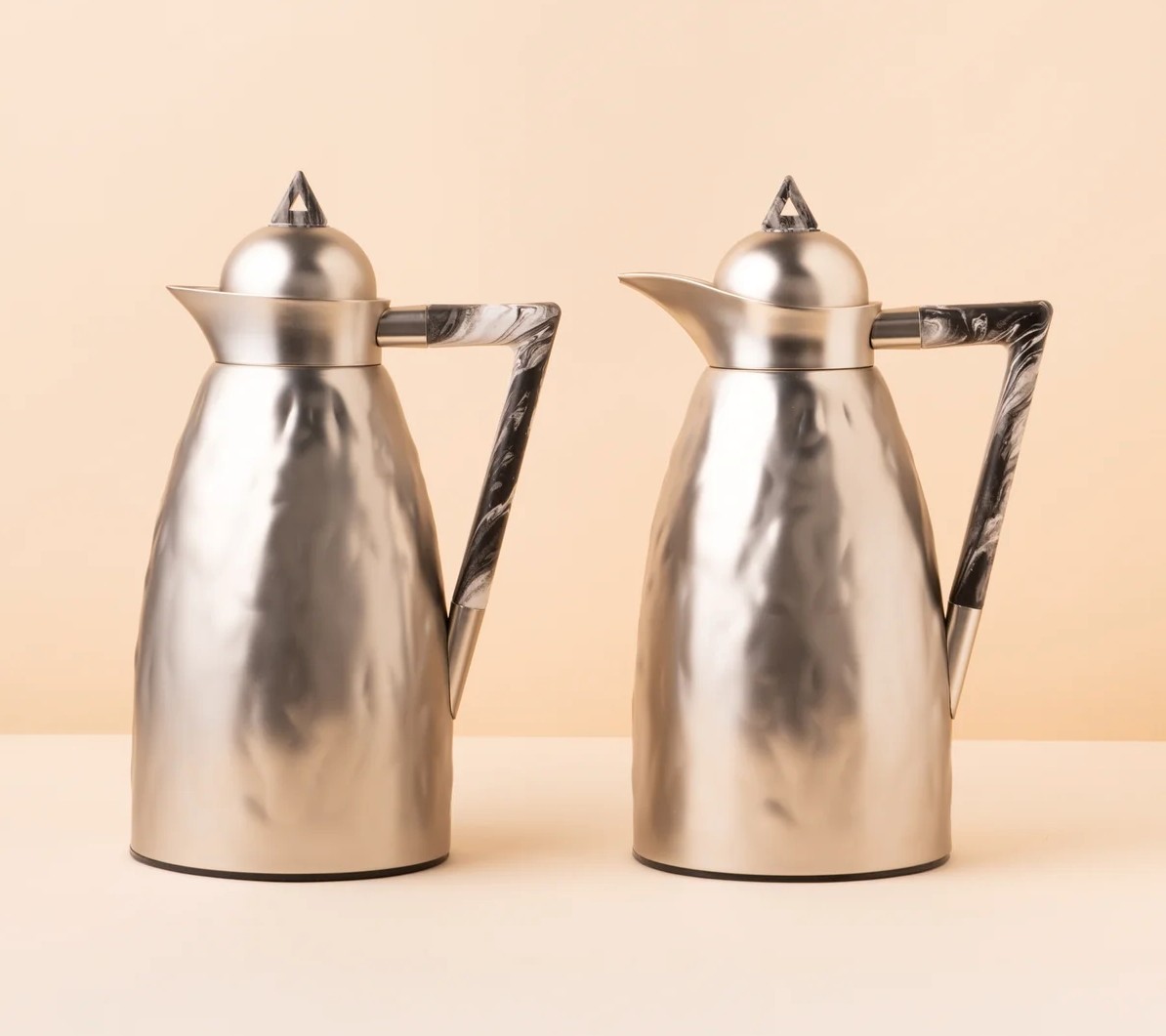 طقم مطارات علياء من وابا قطعتين 1 لتر فضي مطفي بيد جرانيت
