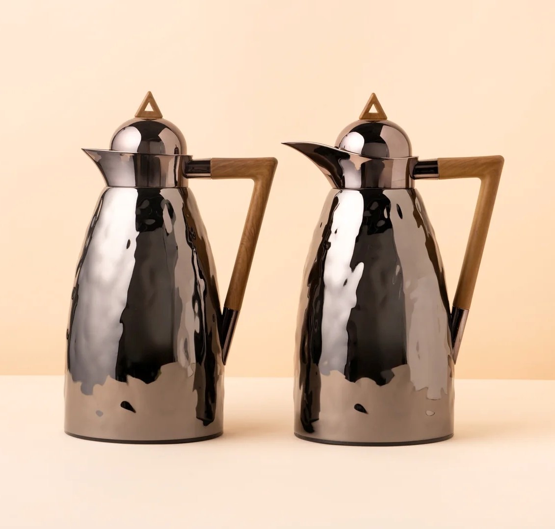 طقم مطارات علياء من وابا قطعتين 1 لتر اسود نيكل بيد خشبي