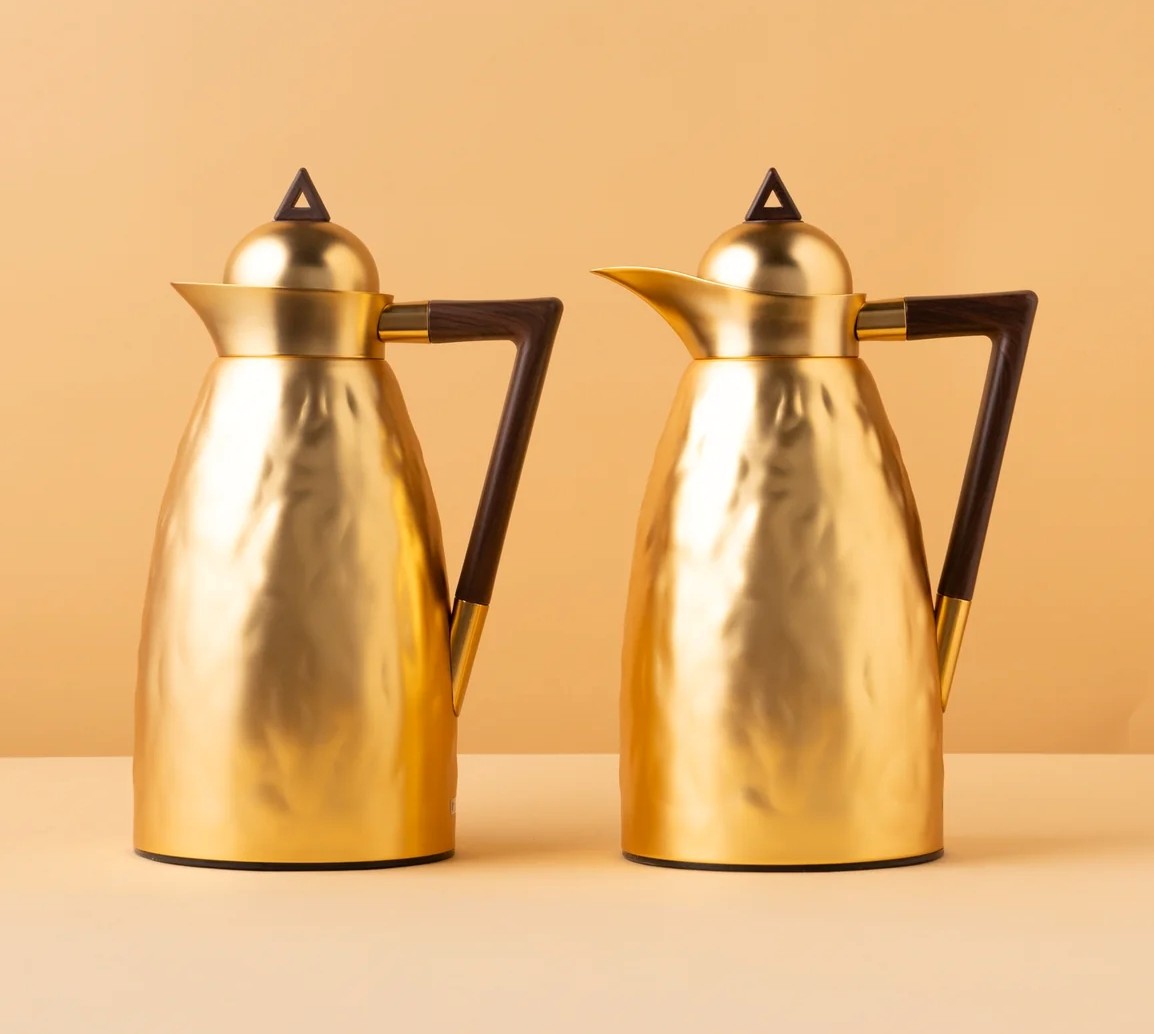 طقم مطارات علياء من وابا قطعتين 1 لتر ذهبي مطفي بيد خشبي