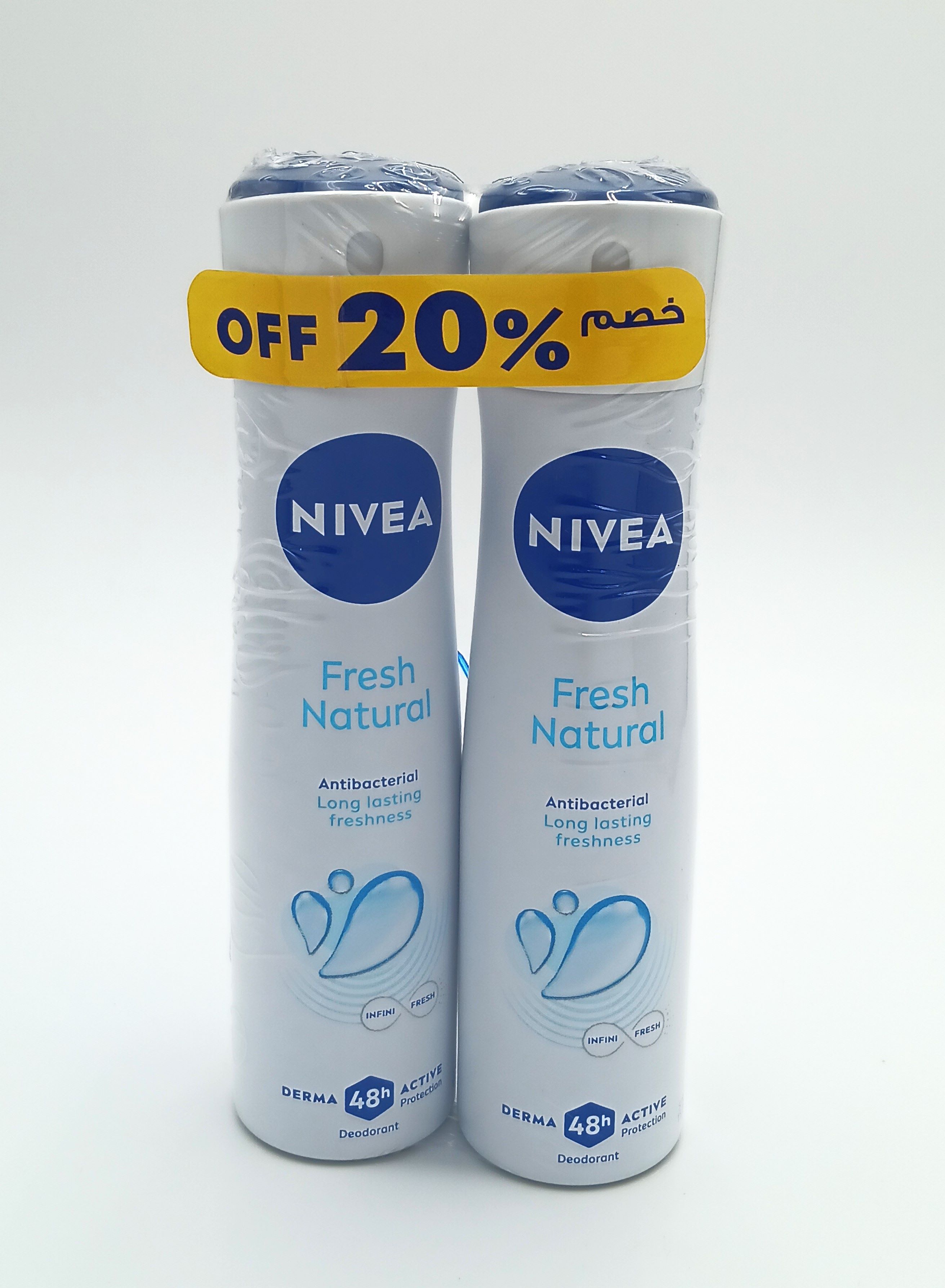NIVEA Deodorant Spray Natural Fresh Long Lasting 2 Pack 150ml