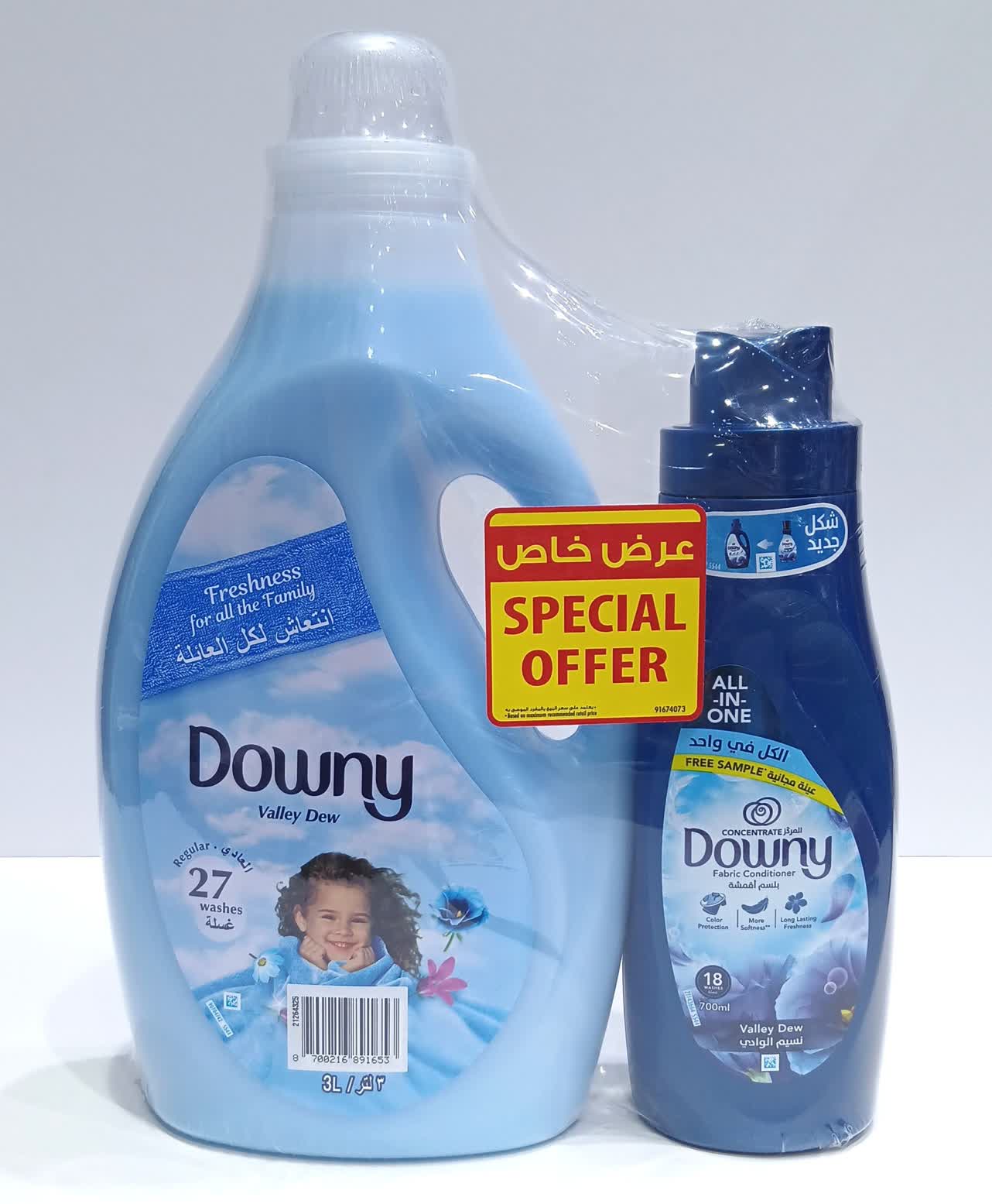 Downy Regular Fabric Softener Valley Dew Scent 3L + Concentrated Fabric Conditioner 700ml