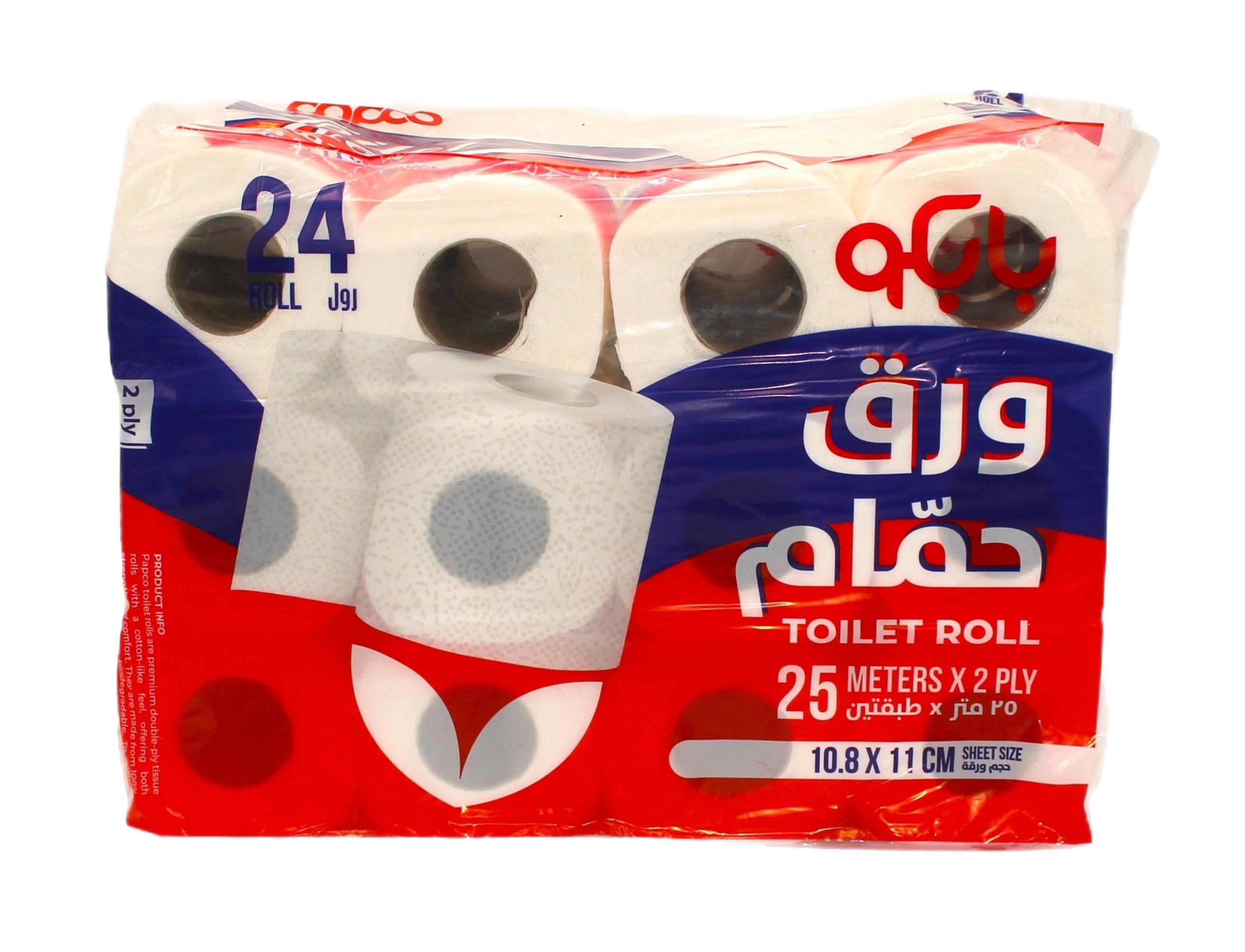 Papco Toilet Paper 25 Meters, 2 Ply, 24 Rolls