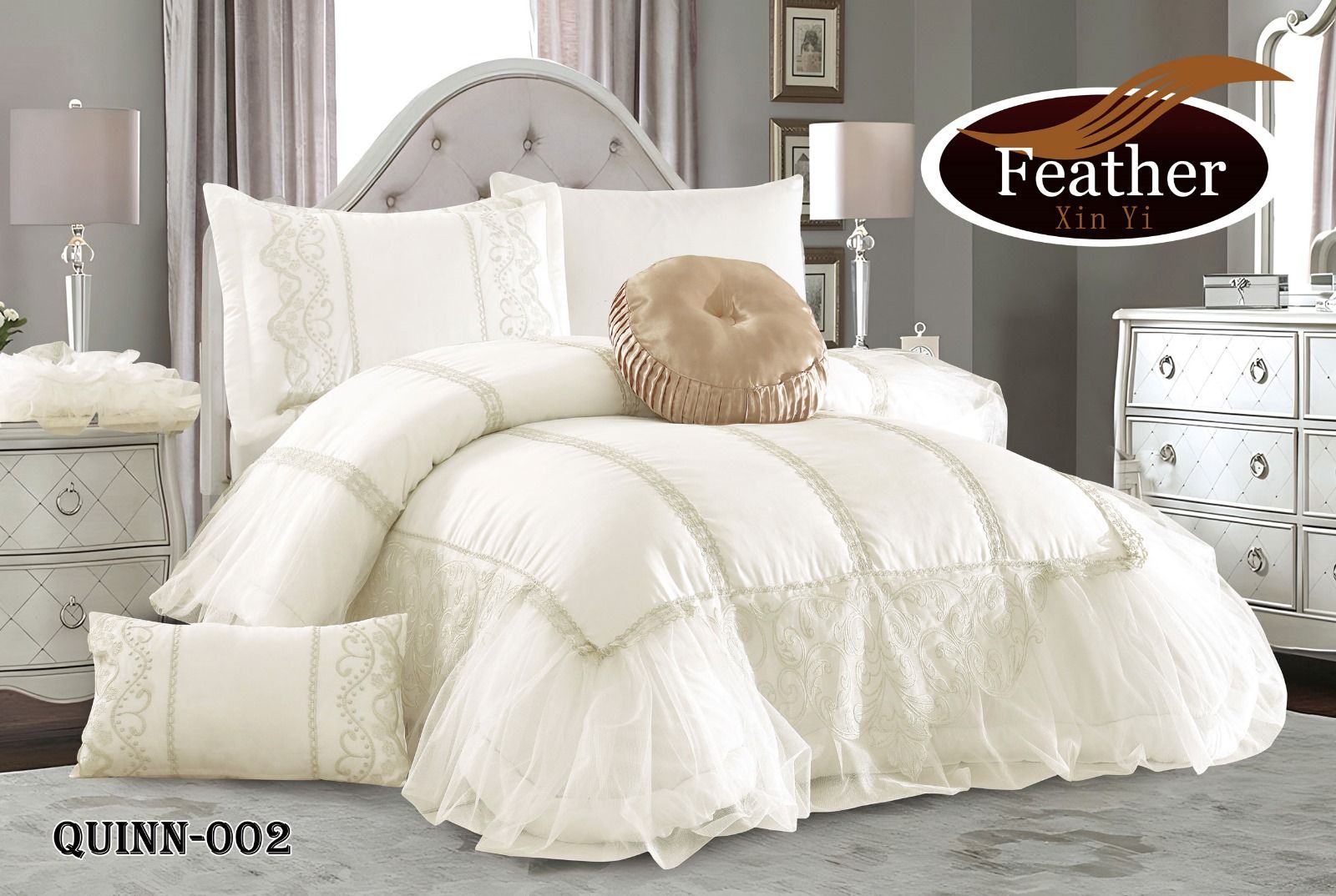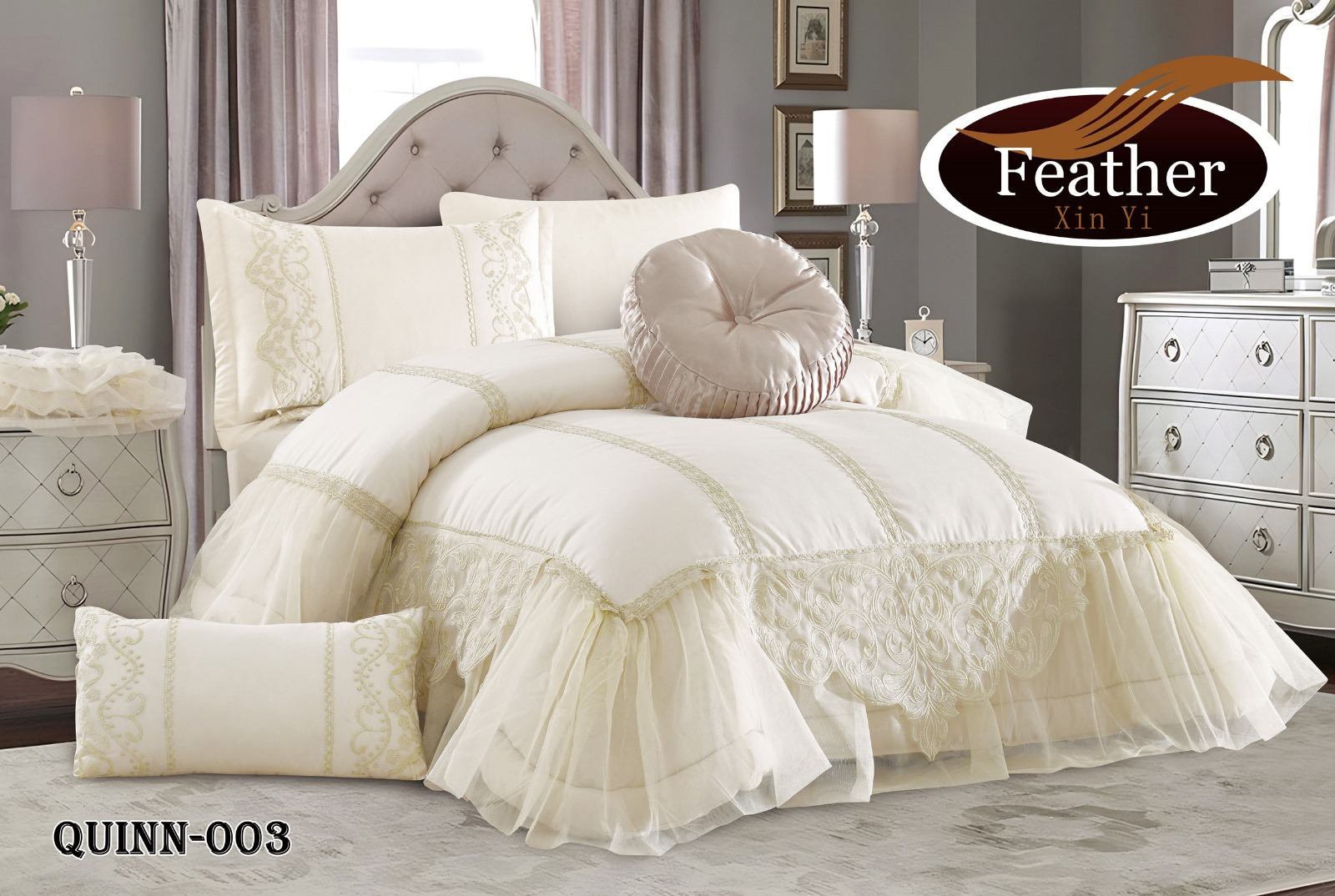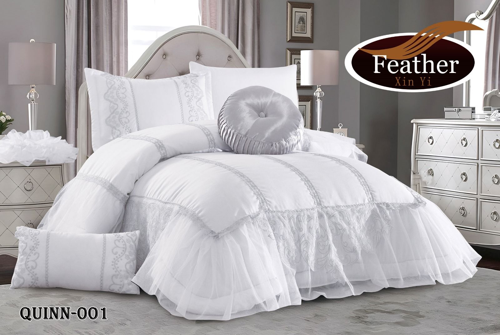 Feather Queen Embroidered Reception Bedspread with Lace, Single and a Half Size, 7 Pieces (Duvet)