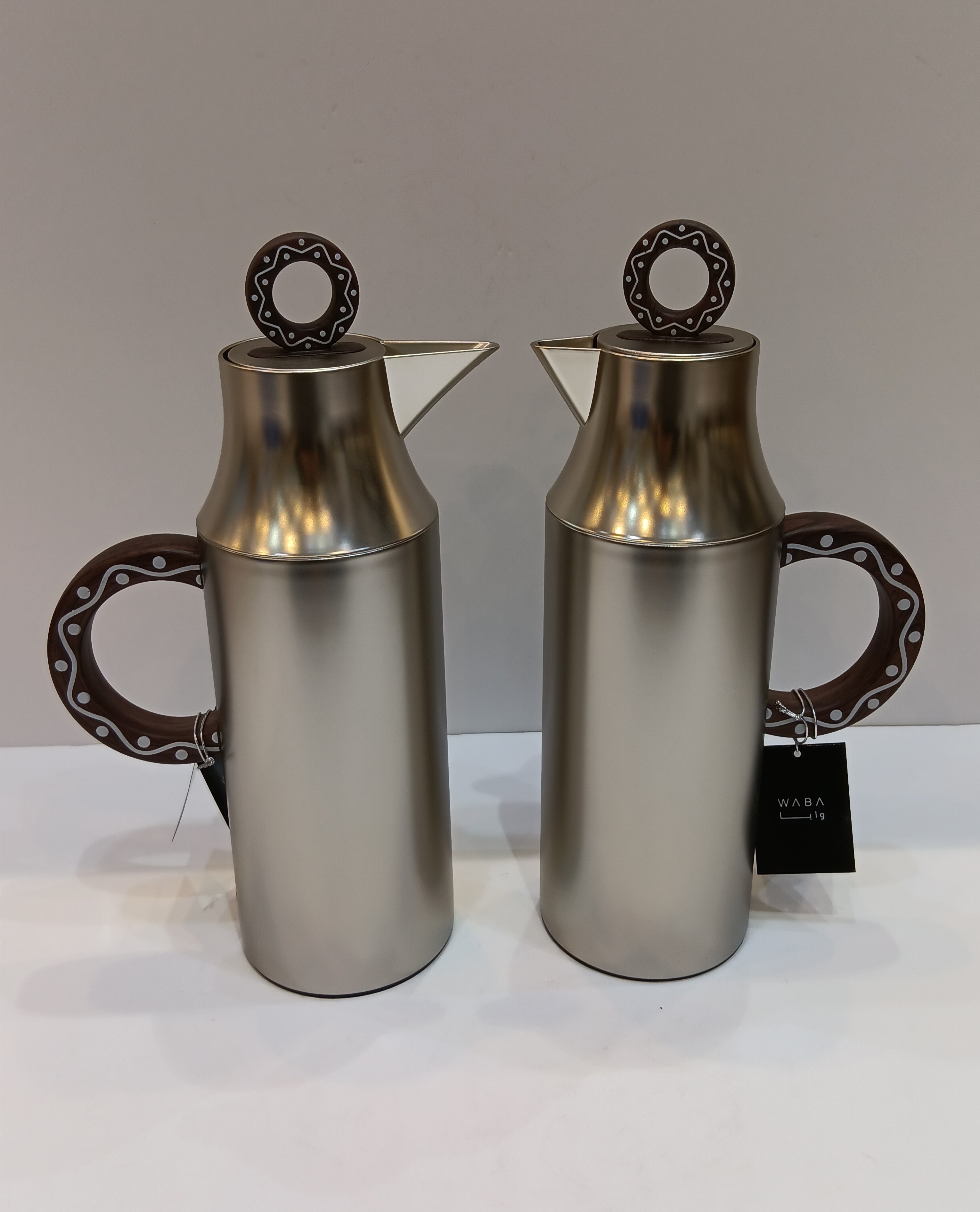 Wapa 2Piece 1Liter Matte Silver vaccum flask Set with Wooden Handle