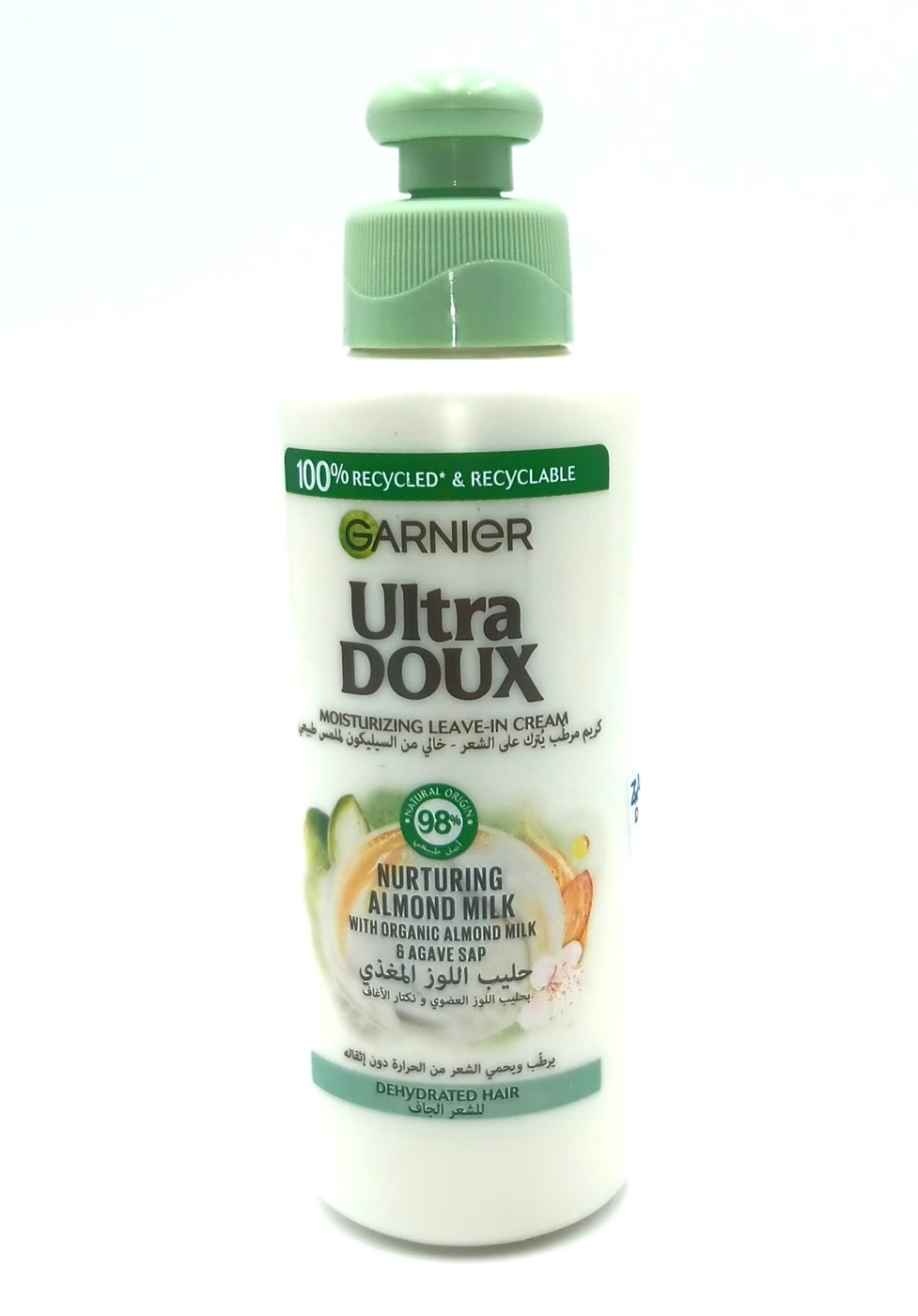 Garnier Ultra Doux Moisturizing Cream for Dry Hair Moisturizes and Protects with Organic Almond Milk and Agave Nectar 200ml