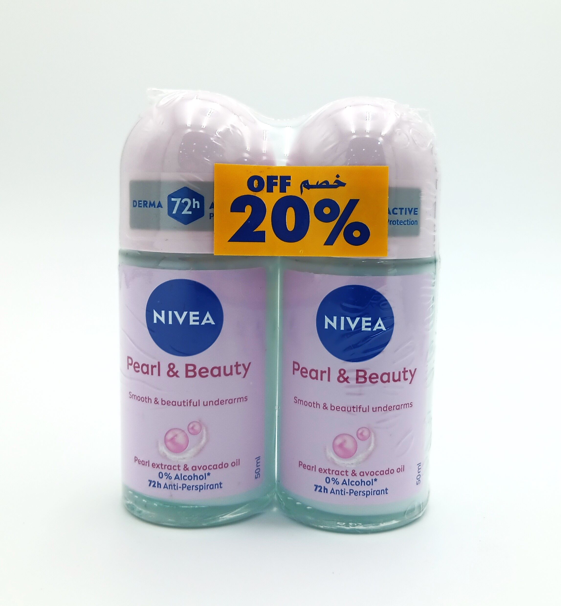NIVEA Pearl & Beauty Roll-On Deodorant with Pearl & Avocado Extract, 2 Packs, 50ml
