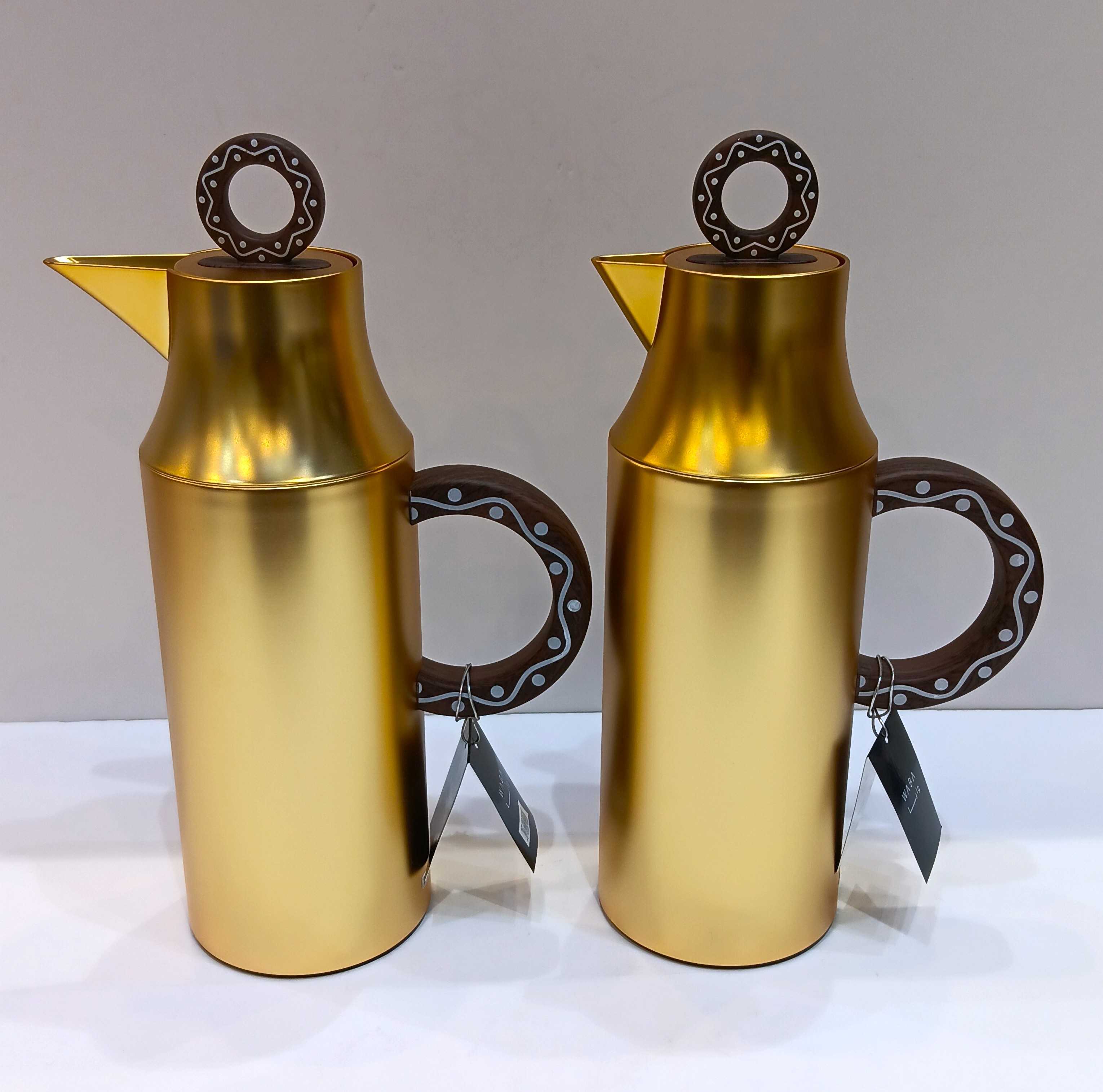 Wapa 2 Piece 1-Liter golden Metallic vaccum flask Set with Wooden Handle