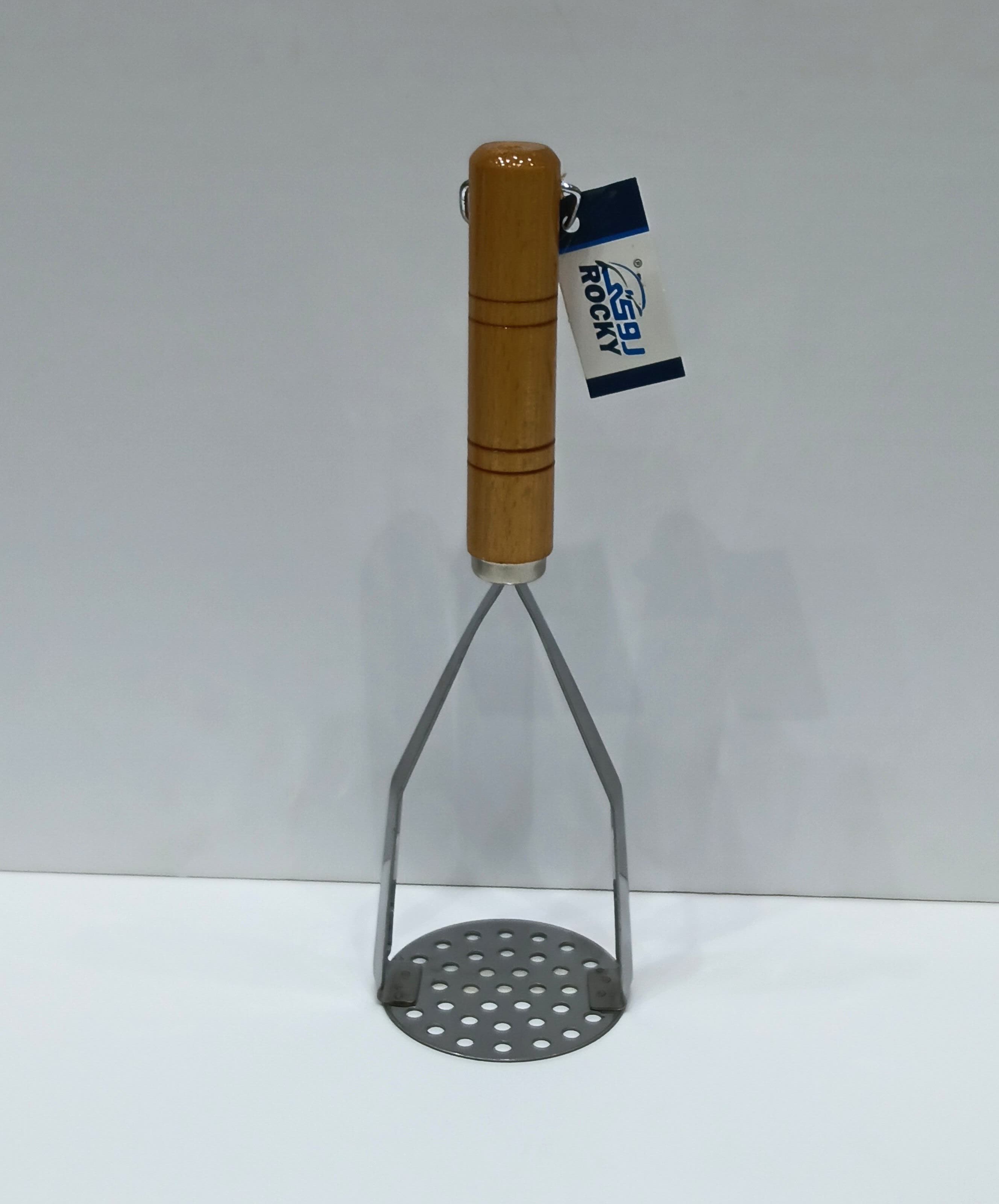 Steel masher with wooden handle