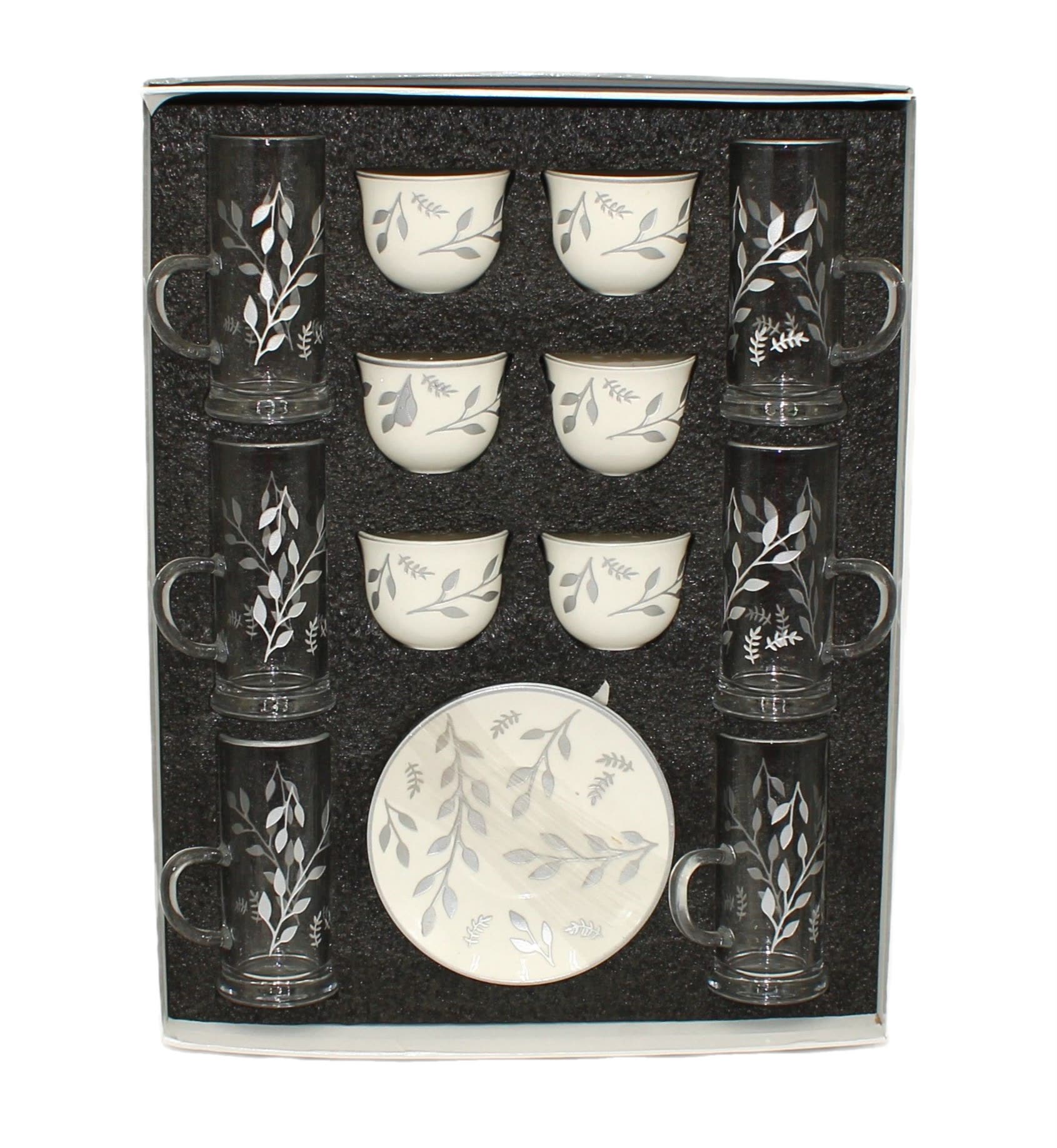 Waba 18-piece tea and coffee set with matte silver patterns