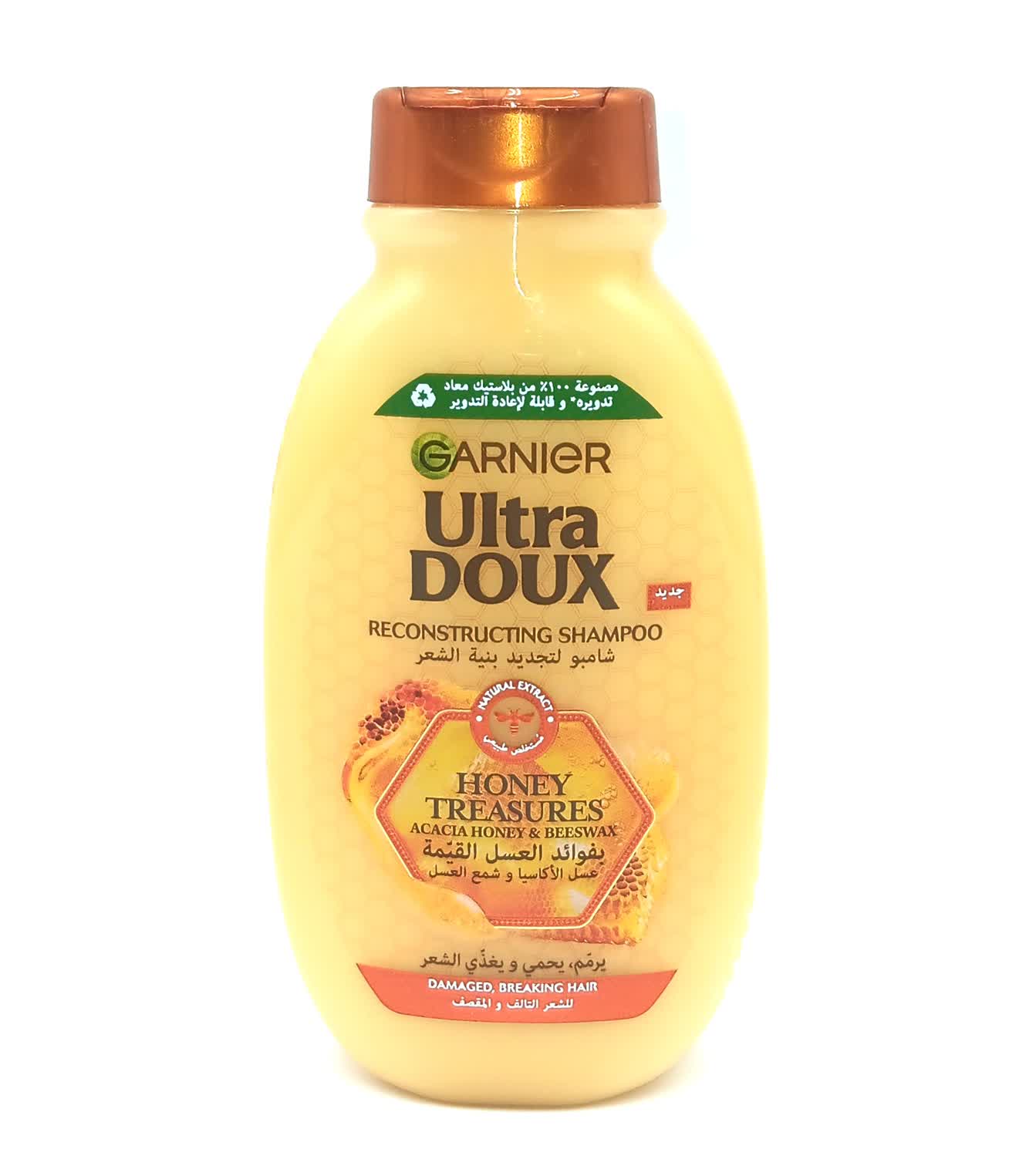 Garnier Ultra Doux Regenerating Shampoo strengthens and nourishes damaged and split hair with the valuable benefits of acacia honey and beeswax.