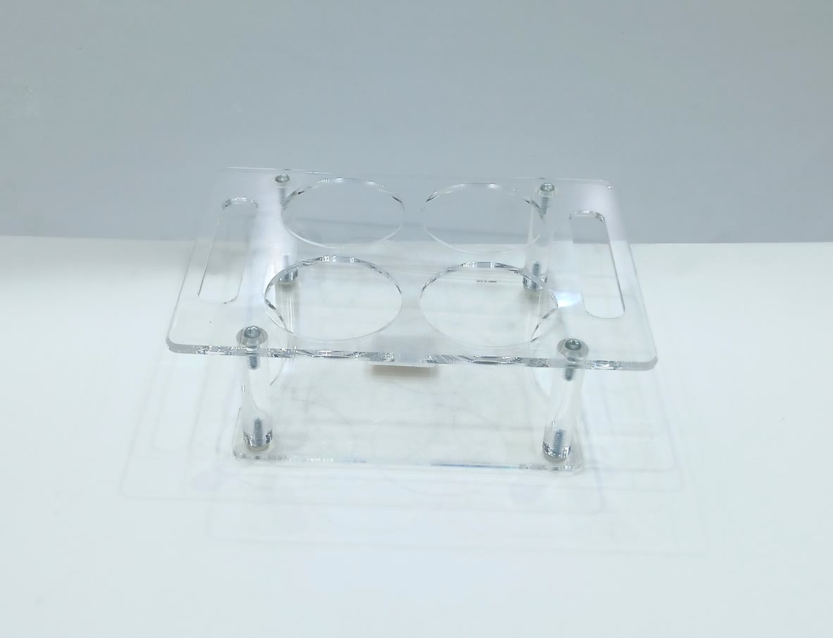 Hollow acrylic serving tray for juice and water, 4 compartments