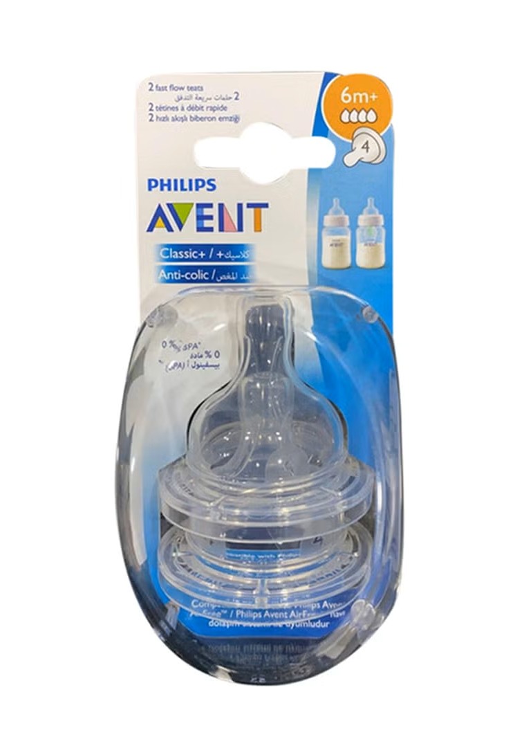 Philips Avent Classic Fast Flow Teats with 4 Holes, 2 Pack, from 4 months