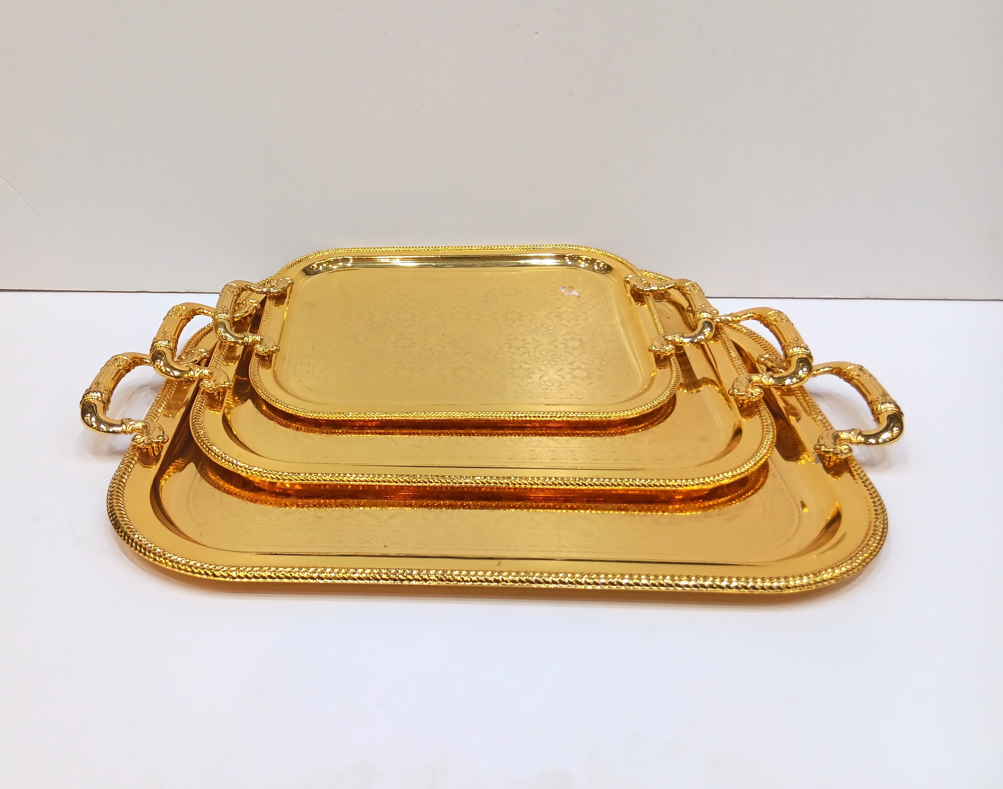 3-piece gold serving tray set