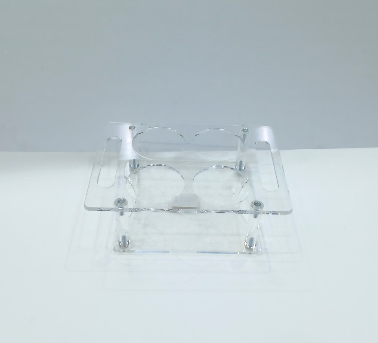 Hollow acrylic serving tray for juice and water, 4 compartments