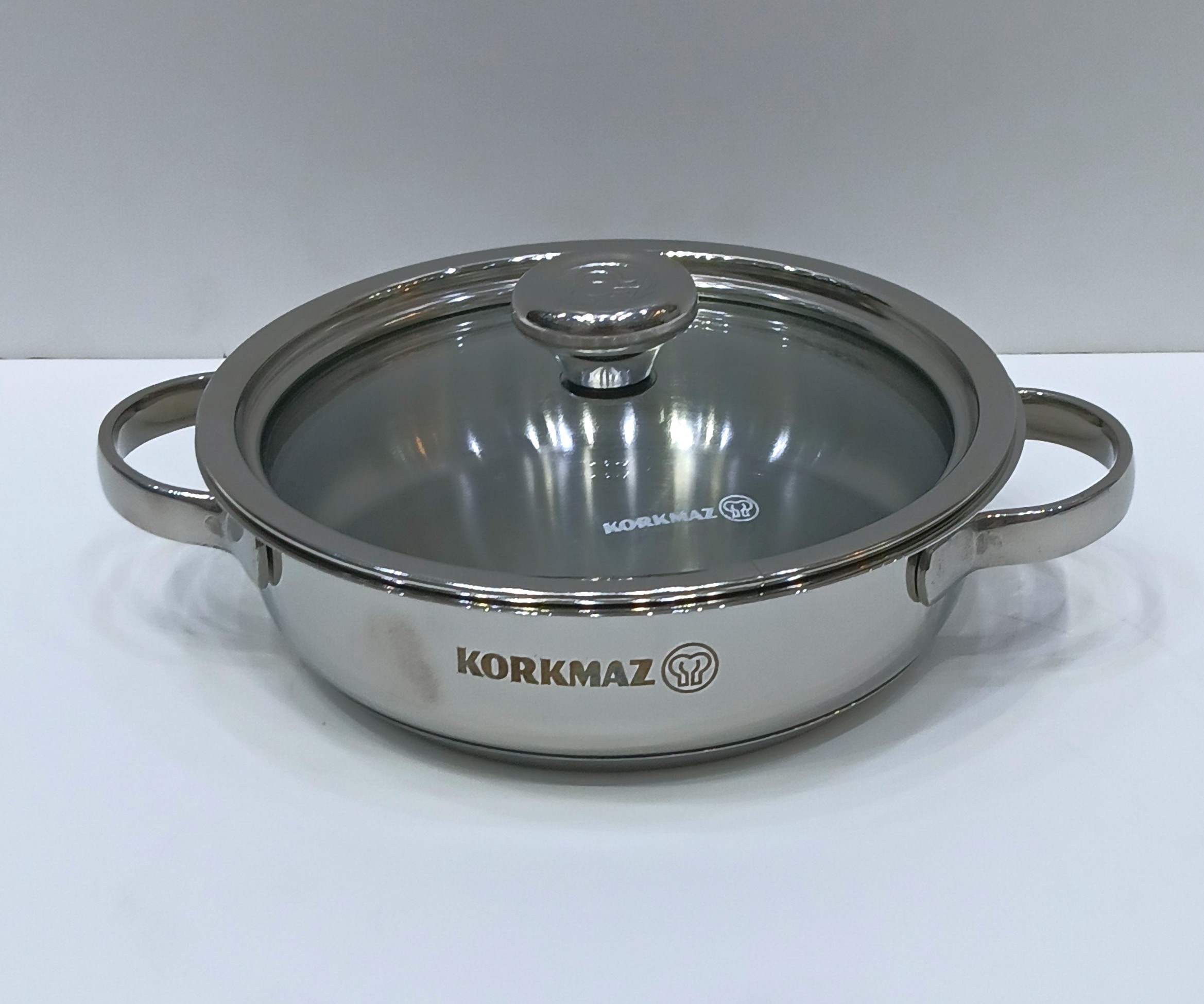Korkmaz 14 cm Stainless Steel Frying Pan with Glass Lid