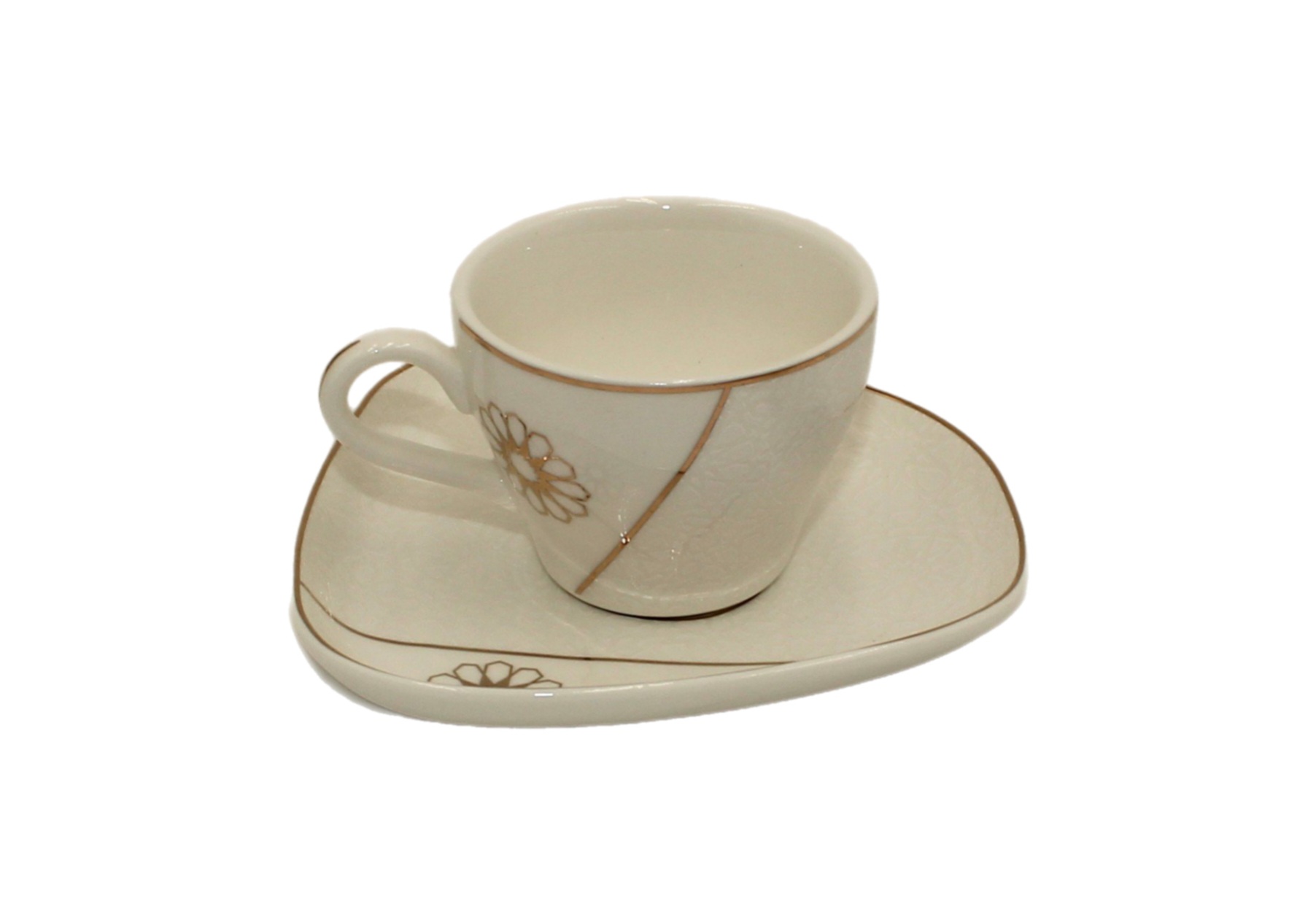 Turkish coffee cup set, gold, rose pattern, 12 pieces