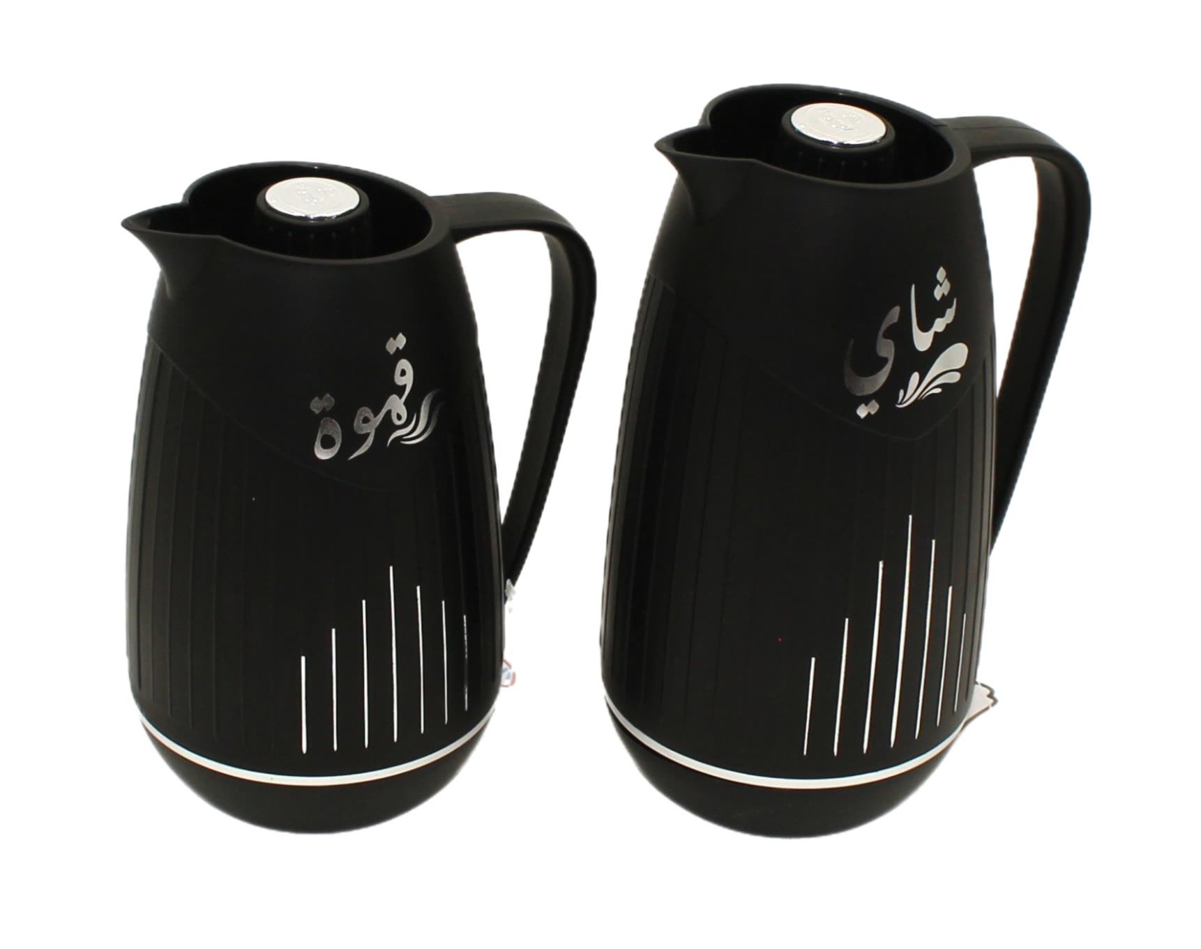 Two-piece thermos set, keeps drinks hot or cold, comes in two sizes: 1 liter + 0.6 liters