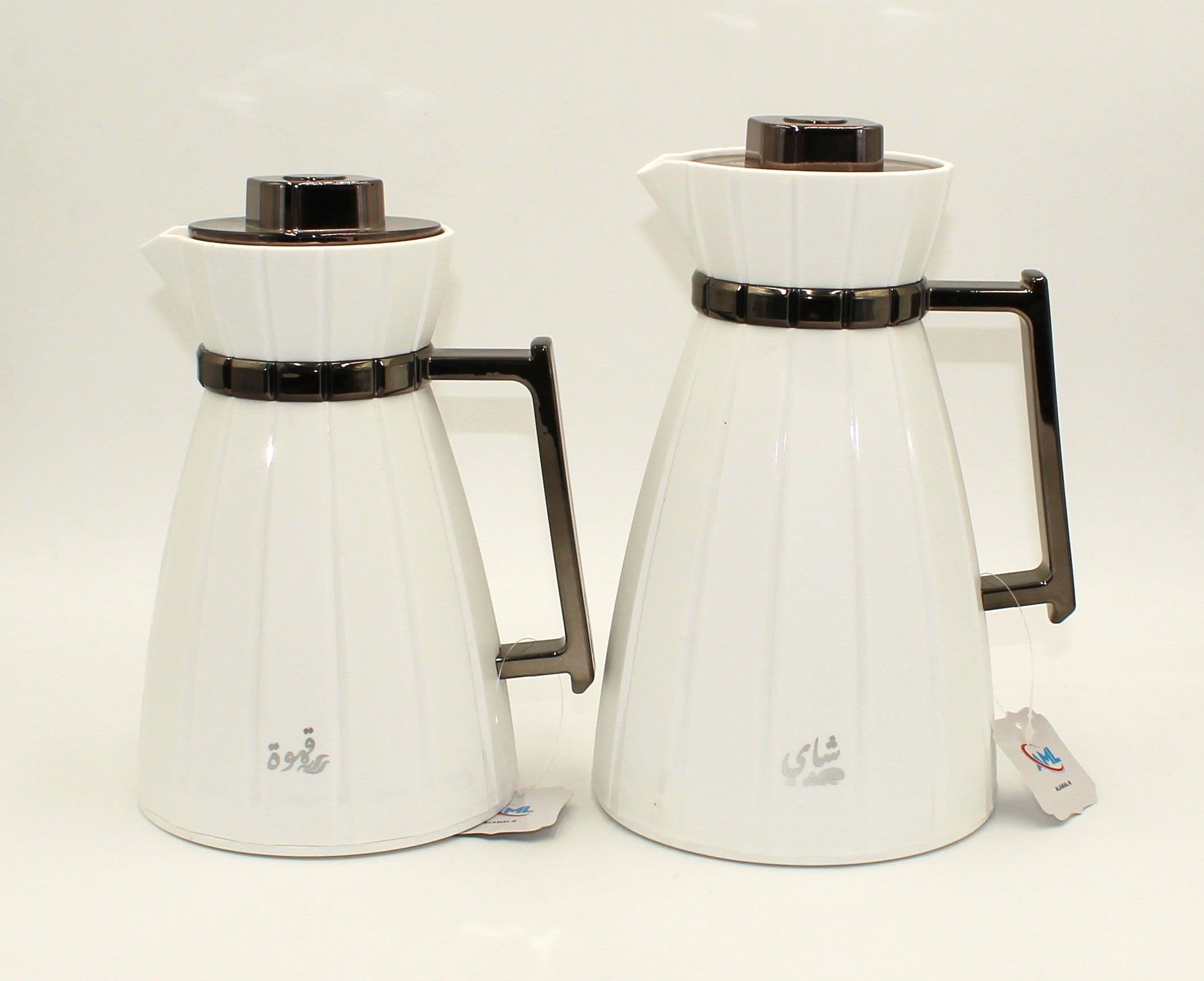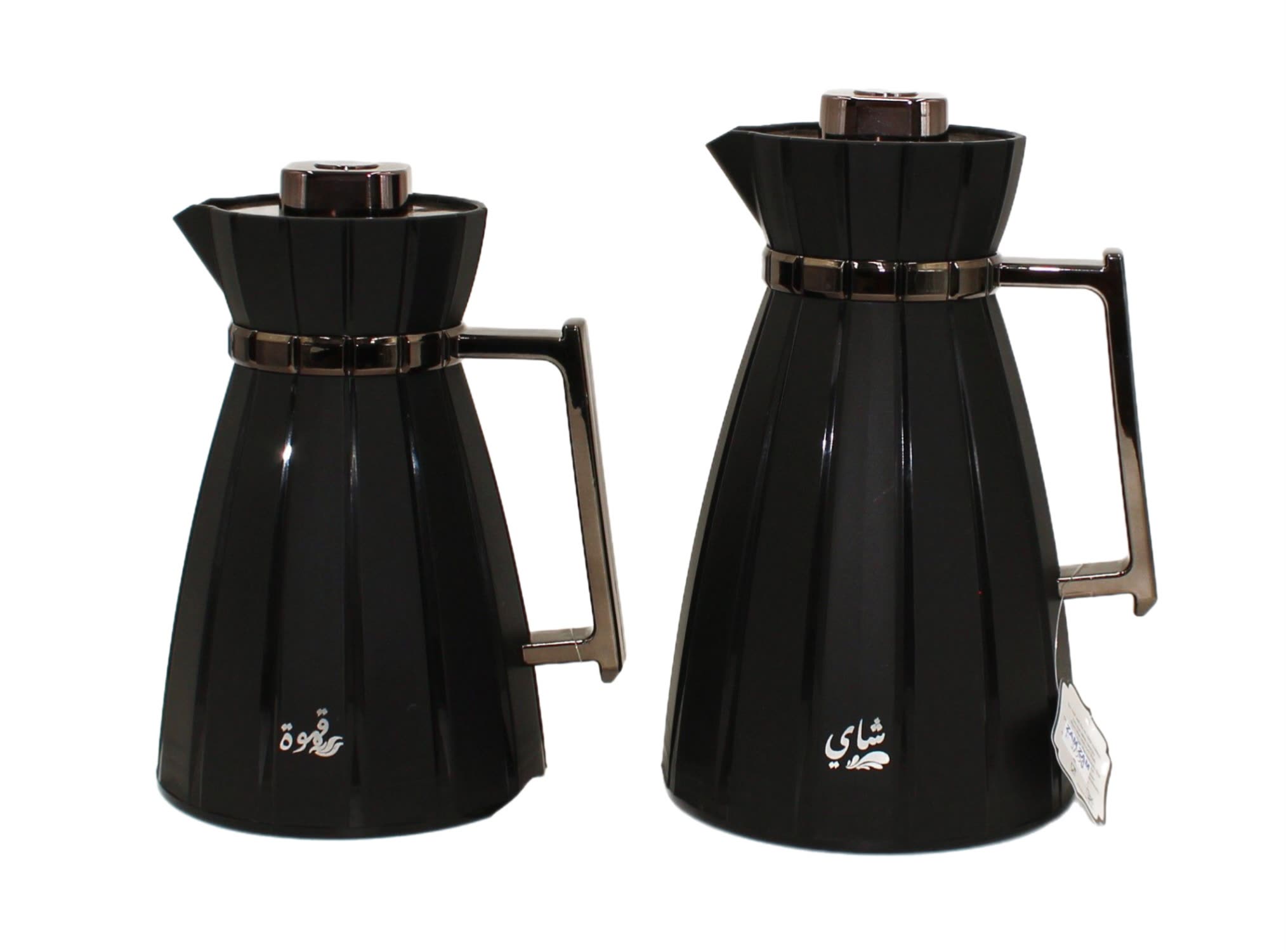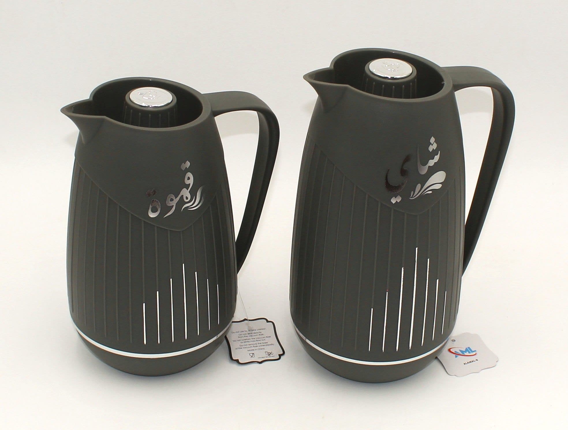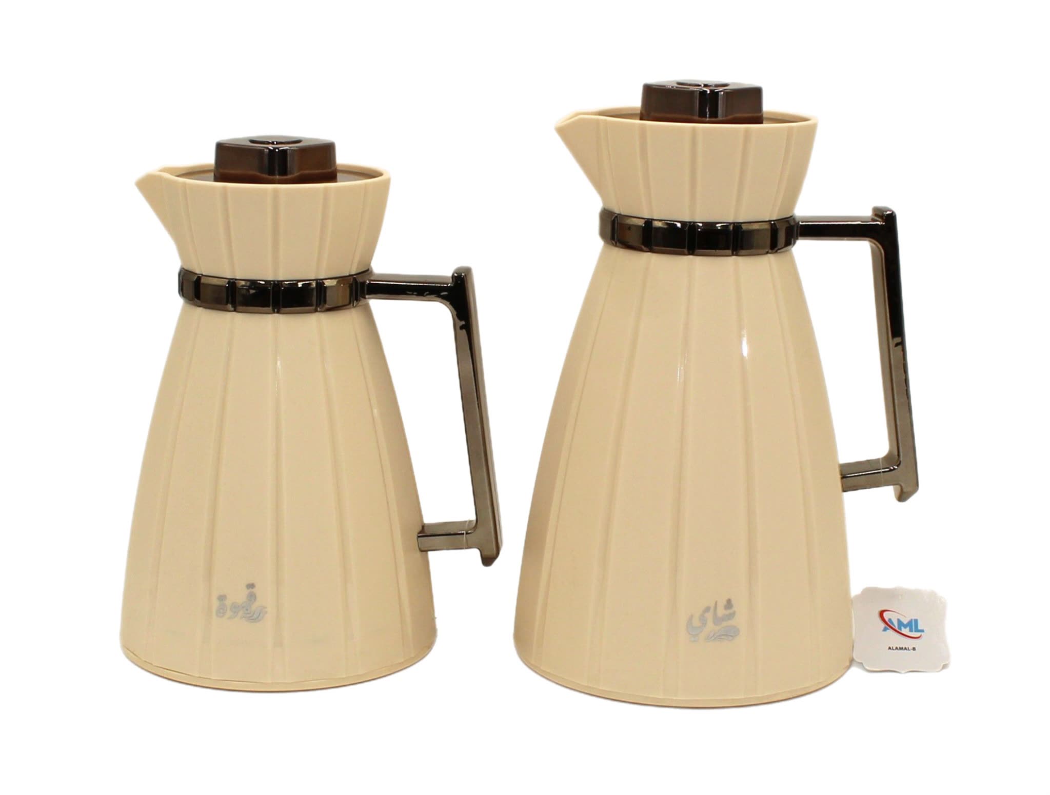 Two-piece thermos set, keeps drinks hot or cold, comes in two sizes: 1 liter + 0.6 liters