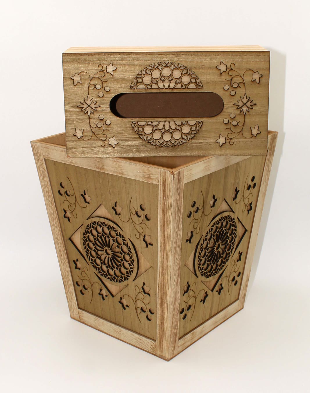 Wooden basket + wooden Kleenex tissue box