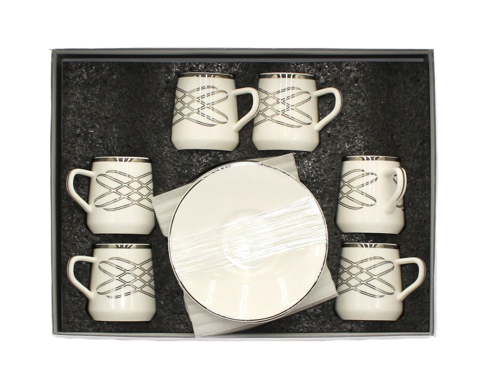 Palm Arabic Coffee Cup Set, Silver, 12 Pieces