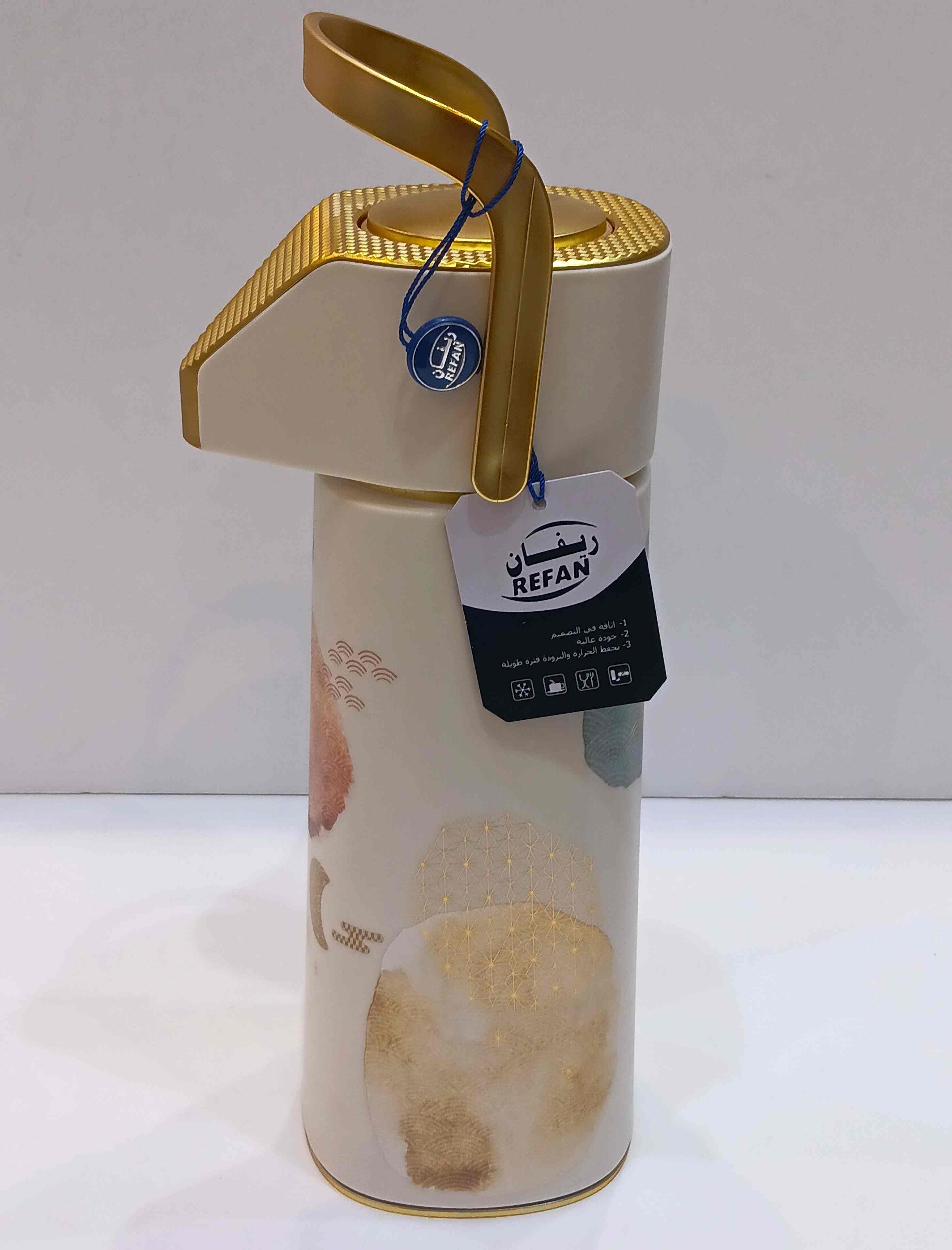 Refan Thermos, Beige, 1 Liter, with a Golden Handle